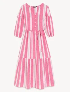This cotton-rich beach dress from Accessorize is made with a hint of linen for a lightweight feel. It’s cut in an easy regular fit, with a flattering v-neckline and a voluminous tiered mini skirt. Statement embroidery on the bodice and frill sleeves adds a feminine final touch.
