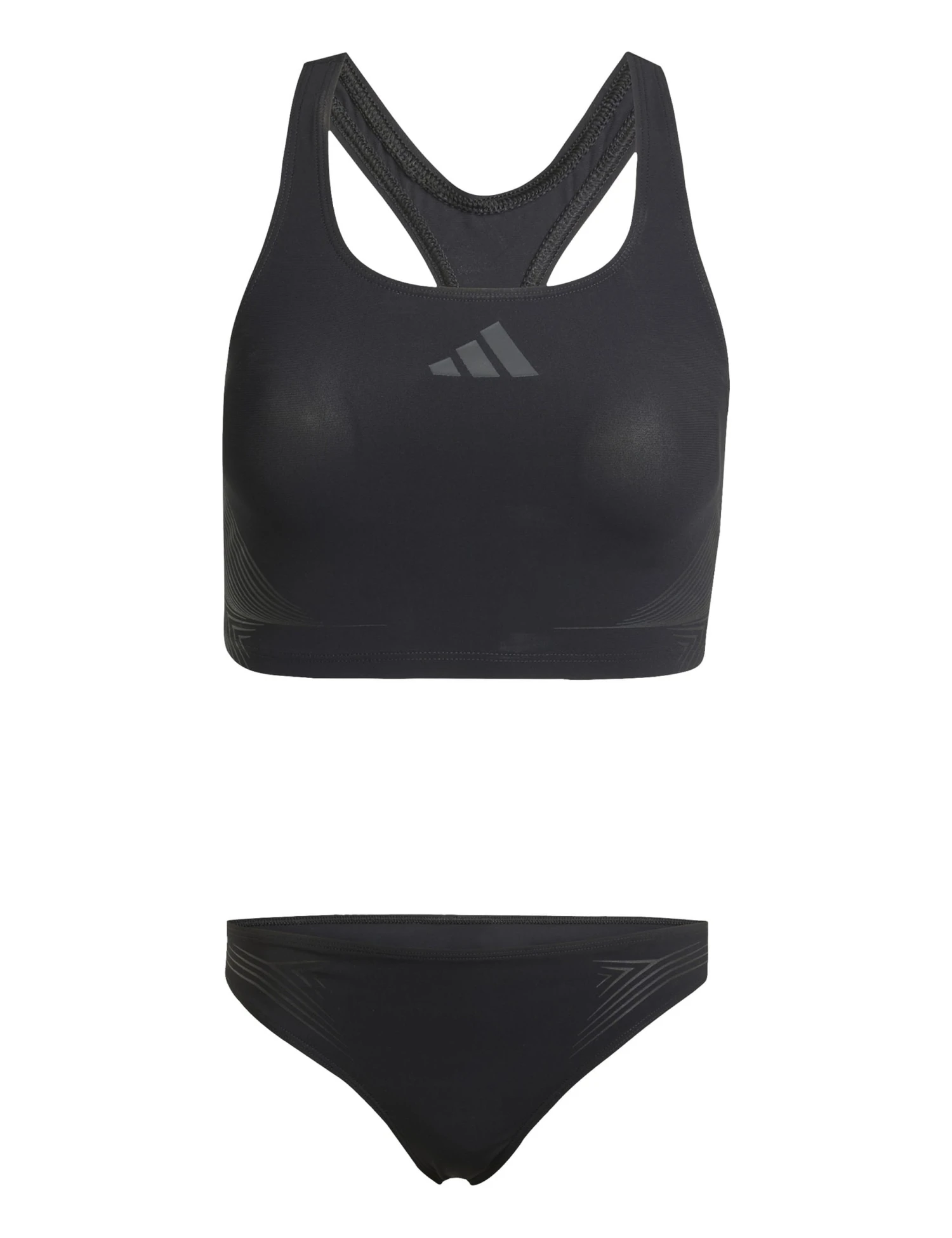 Hit your stride in the water with this bikini top from adidas. This stretchy style is non-padded with a flattering scoop neck. The racerback design has extra cut-out detailing for enhanced comfort and flexibility. The brand’s iconic three-bar logo on the front adds a signature touch.