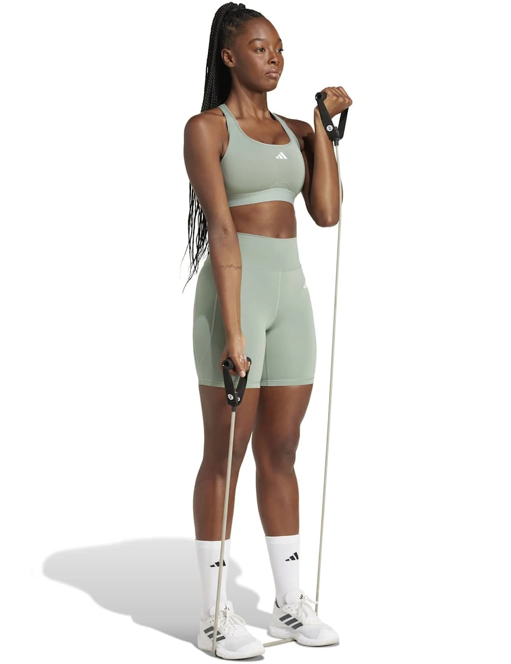 7inch Short Leggings for women. These high-rise tights are designed to move as you do. Featuring AEROREADY technology for superior moisture absorption, they keep you dry during intense training sessions. Sweat Wicking