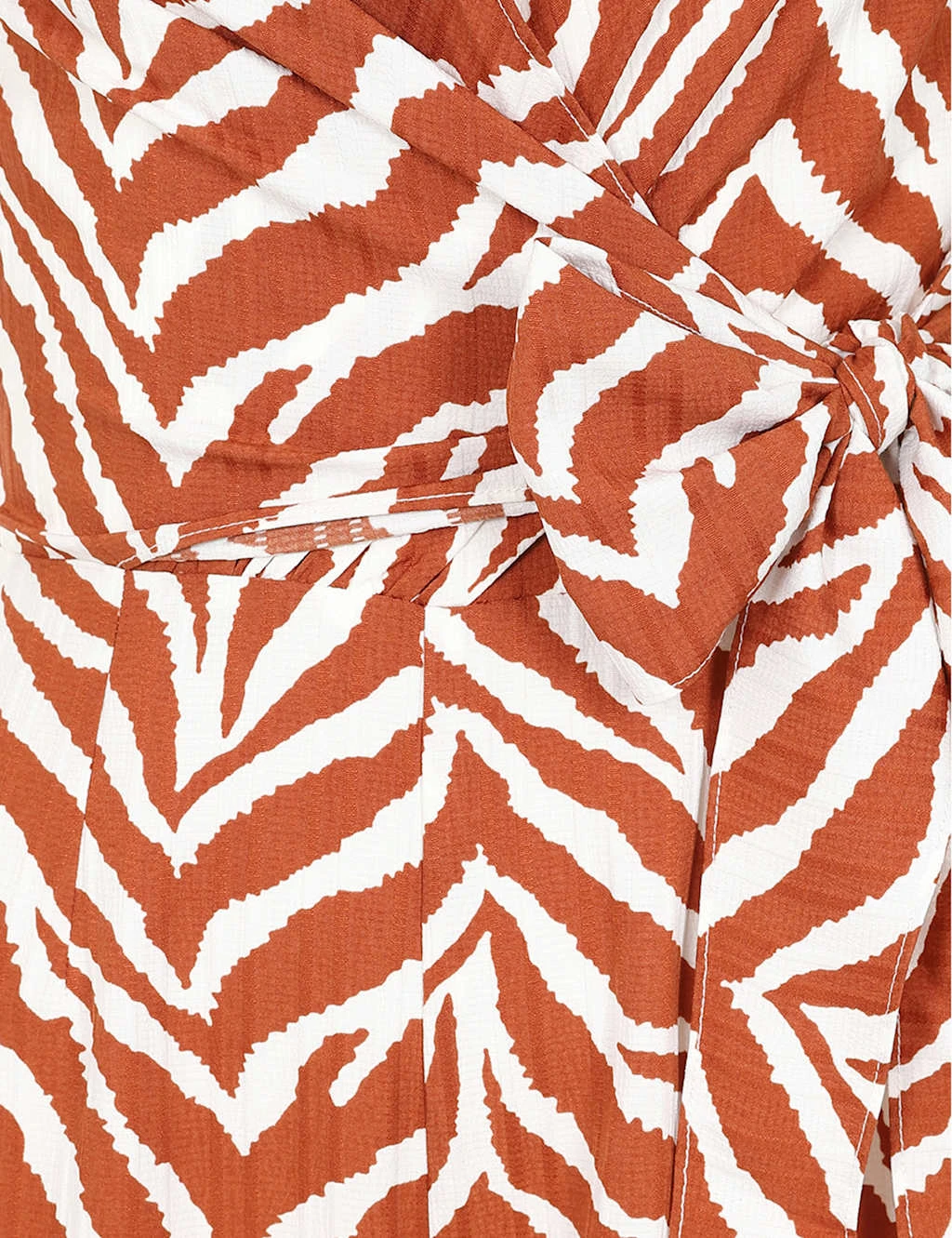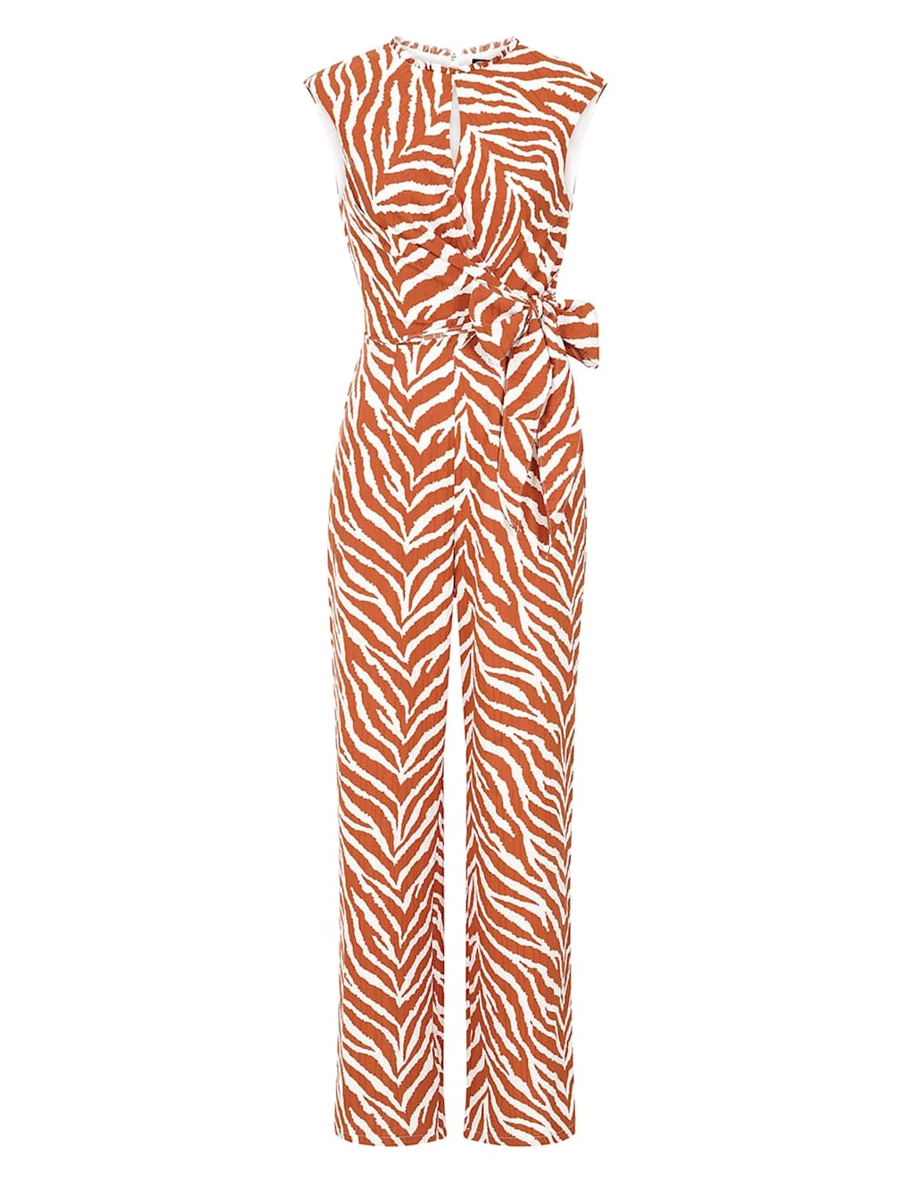 With its bold animal print, this jumpsuit from Little Mistress is a real party piece. It has stylish straight legs and a wrap-style top, which can be pulled in at the waist and tied in a statement bow. The high neck features keyhole detailing and fastens at the back with a button for a neat finish.