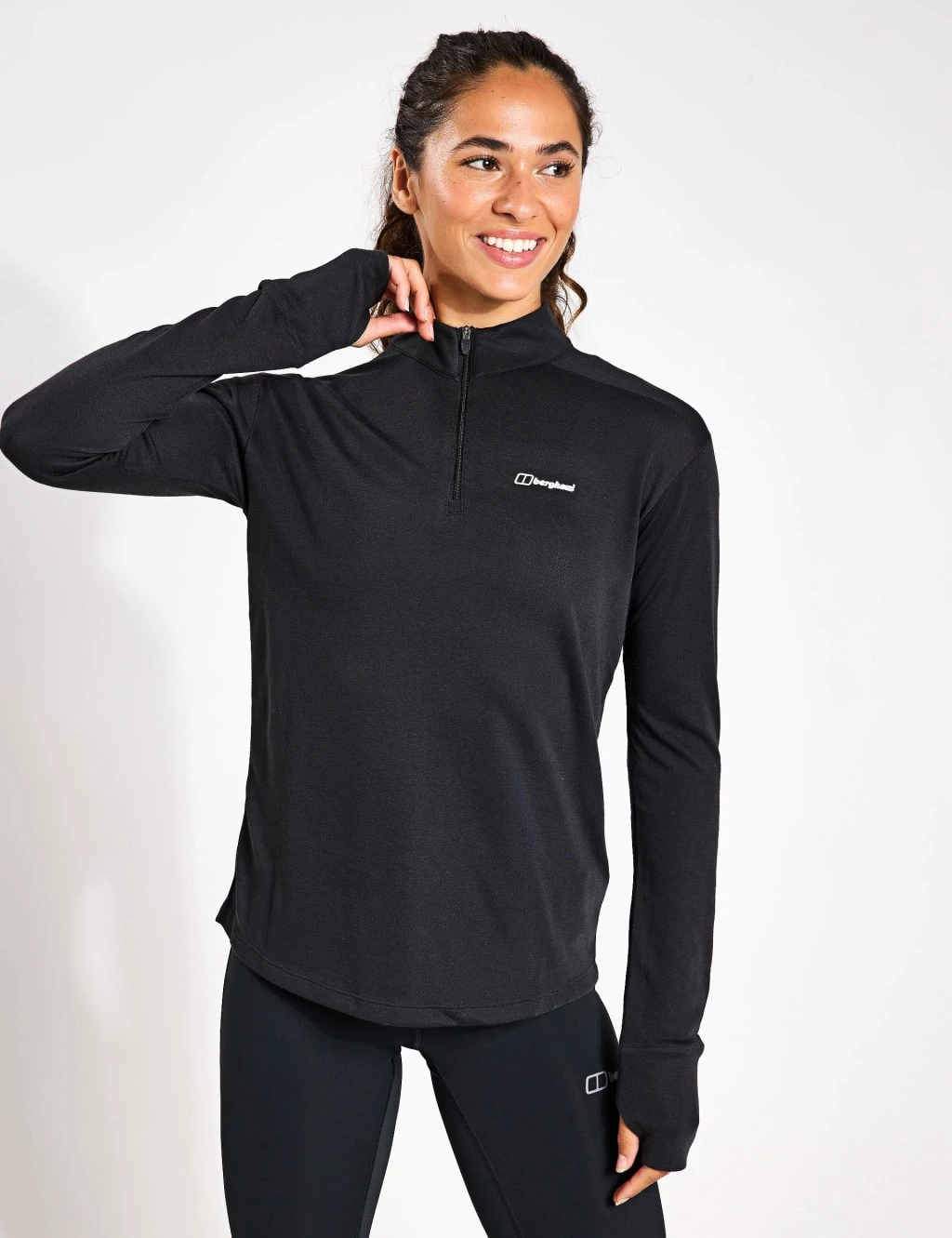 Build your trusty layers for cooler weather with the Ivyhill base layer top from Berghaus. It’s made in a regular fit, with a snug funnel neck featuring a half-zip fastening for customisable coverage. The fabric is soft and moisture-wicking, ensuring you stay comfortable and dry. Thumb loops keep your sleeves in place and hands warm when layering.