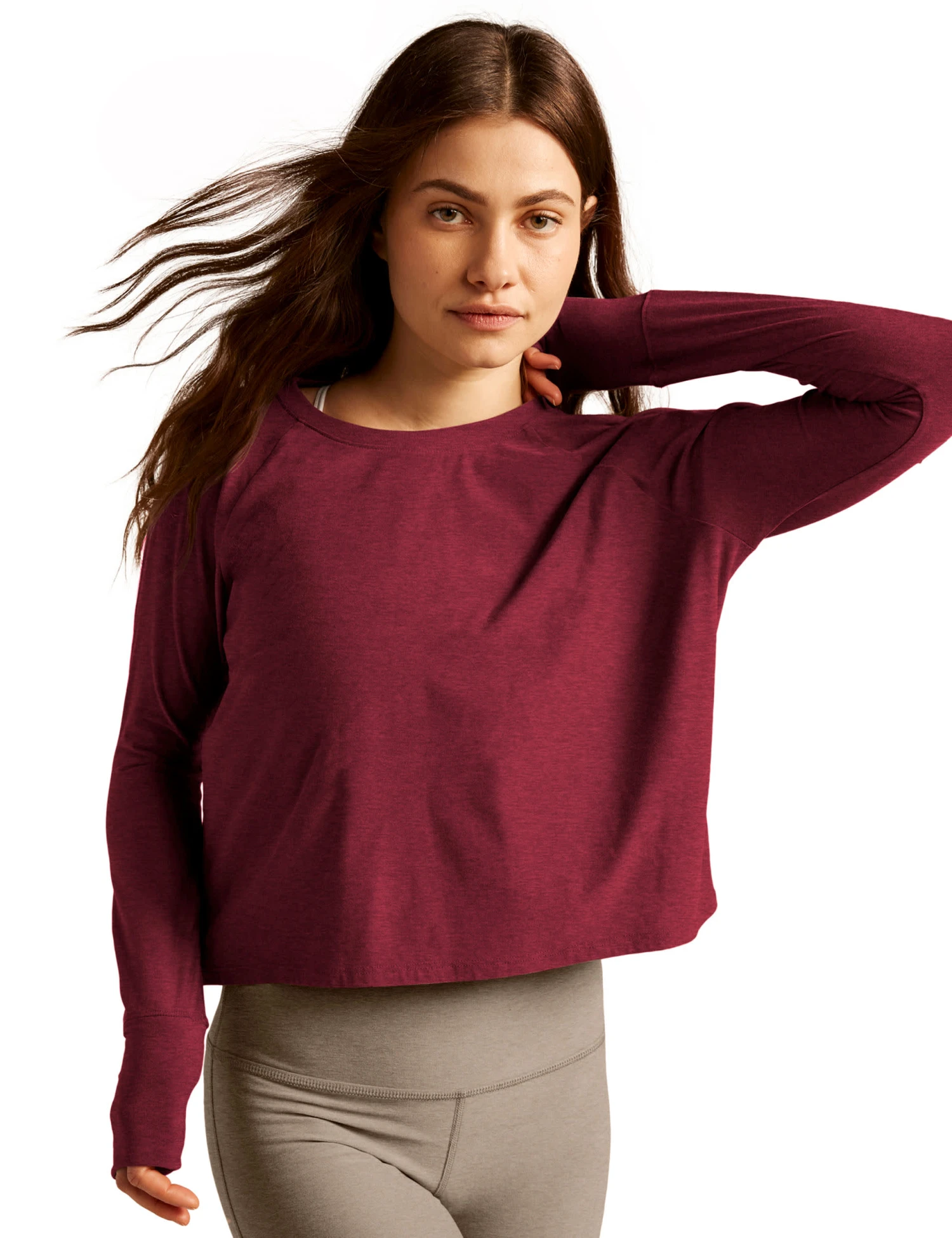 The Featherweight Daydreamer top from Beyond Yoga is delightfully soft and light. It’s cut to a comfortable regular fit, with a neat crew neck and long sleeves with extended cuffs for extra coverage. A subtle logo on the back gives this piece a signature finish.