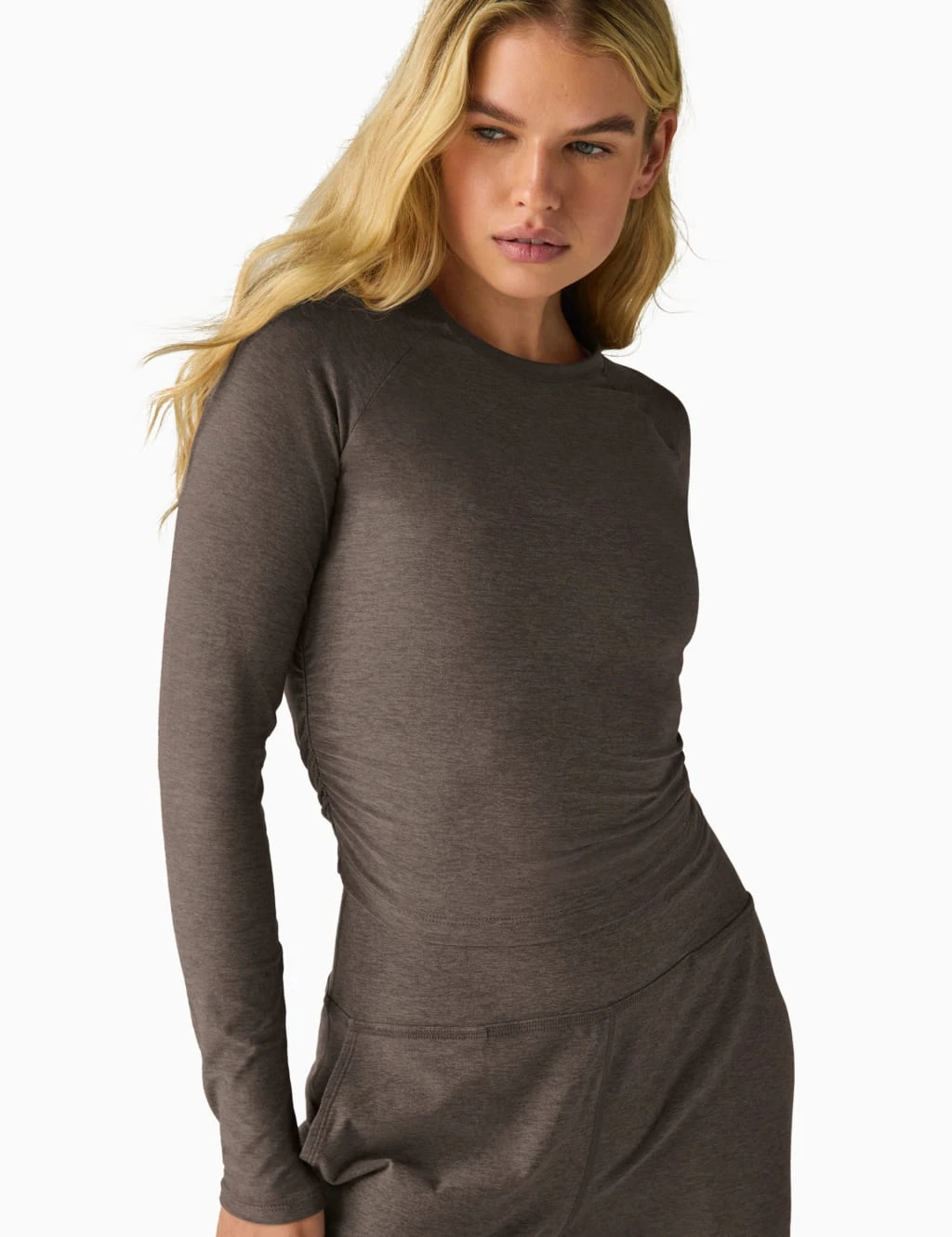 This long-sleeved top by Beyond Yoga is made from the brand’s lightest fabric for a barely-there feel. It’s designed in a fitted shape with a neat crew neck. The four-way stretch material is ultra-soft and has moisture-wicking properties for comfort during workouts.