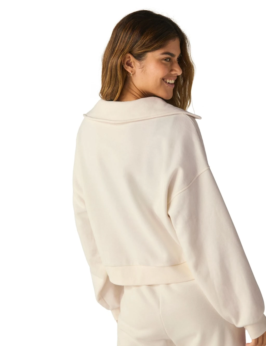 A laidback, sporty look is easy with this cotton-rich sweatshirt from Beyond Yoga. It’s made in an effortless relaxed fit to a boxy silhouette, with a flattering v-neck placket and a wide collar for a stylish touch. A kangaroo pocket at the front adds a practical finishing touch.