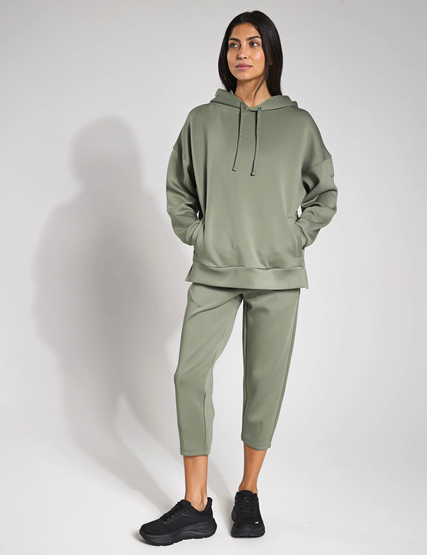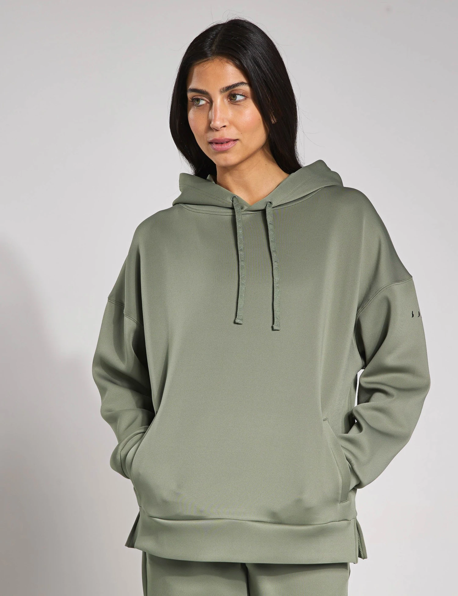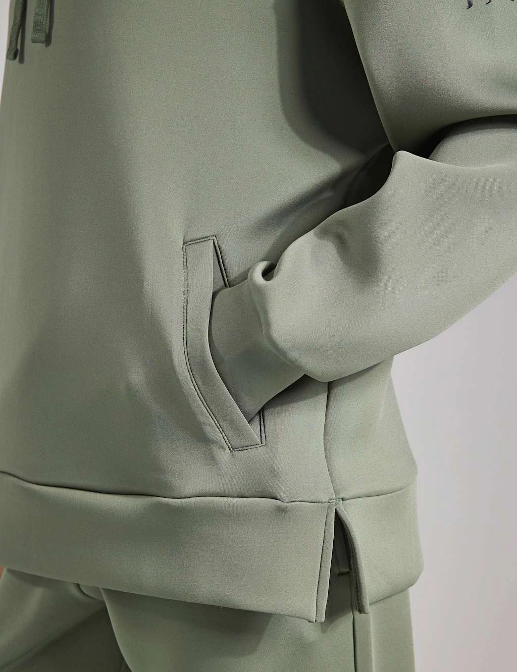 Performance meets cloud-like comfort in the Isolde sweatshirt from BORN. It has a regular fit, with dropped shoulders that create a loose and laidback look. The innovative Sku Cloud technical fabric offers a luxuriously smooth feel. Styling includes convenient side pockets and a drawstring hood. Four-way stretch provides ease of movement, while quick drying and antibacterial properties ensure lasting freshness.