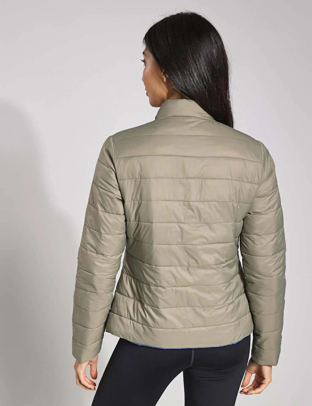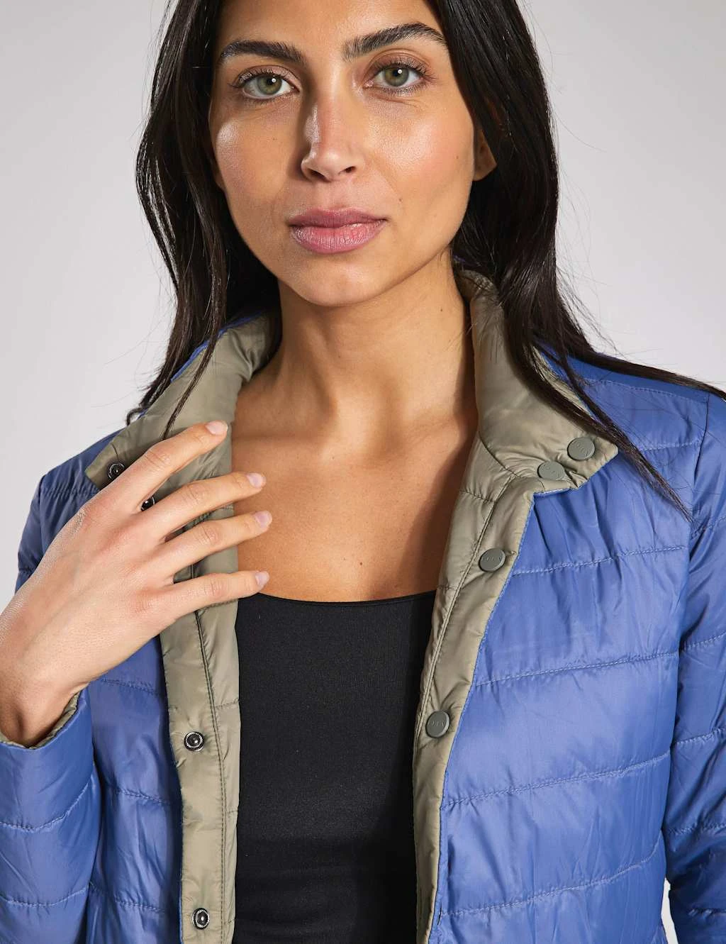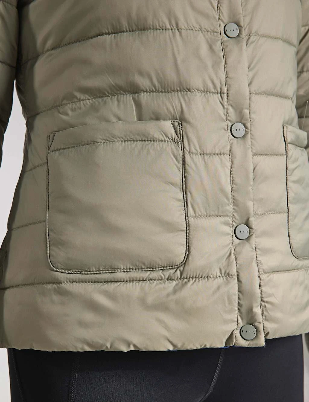 The lightweight Lyra puffer jacket from BORN has a reversible design for two ways to wear. This quilted style is made in a regular fit from wind-repellent fabric with thermal insulation. A funnel neck offers extra coverage. Both sides feature popper fastenings and handy patch pockets.