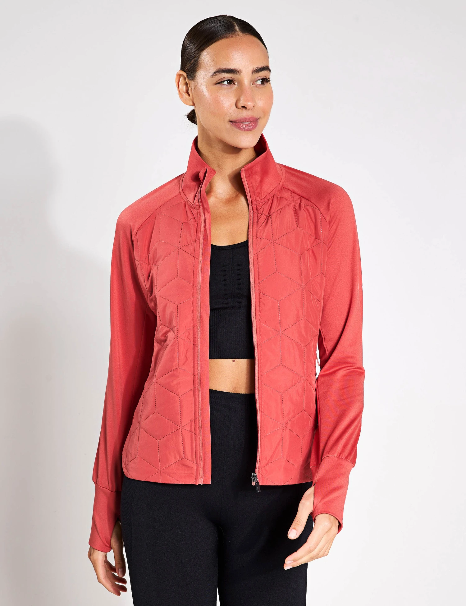 Add a sporty layer to your outfits with the Revna jacket from BORN, made with a touch of stretch for easy movement. It’s cut to a comfy regular fit, with a zip-through fastening and a neat funnel neckline. The bodice is lightly quilted, while the long sleeves are smooth and finished with deep, ribbed cuffs that have thumbholes to stop the sleeves riding up. This piece is complete with two handy zipped side pockets.