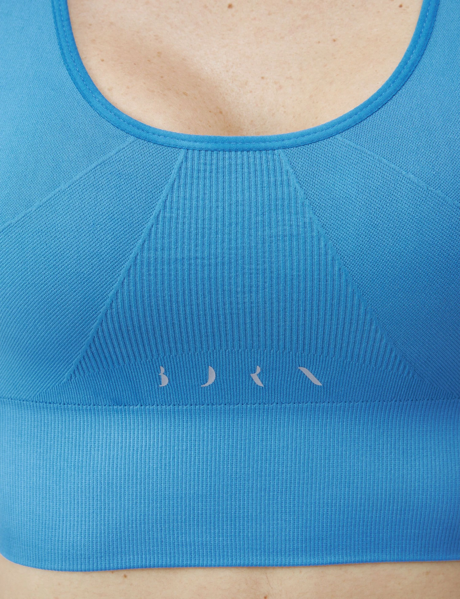 Power through high-impact workouts with confidence in the Urdhva ultimate support bra from BORN. This pull-on style features non-wired cups with removable padding. A seamless design helps prevent chafing, while the ‘Air_Feel’ second-skin fabric has a soft touch with four-way stretch for easy movement. A mix of plain and ribbed knits creates subtle texture and there’s an antibacterial finish for extra hygiene.
