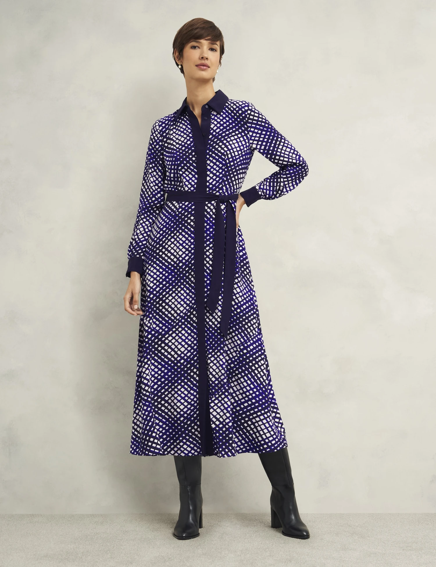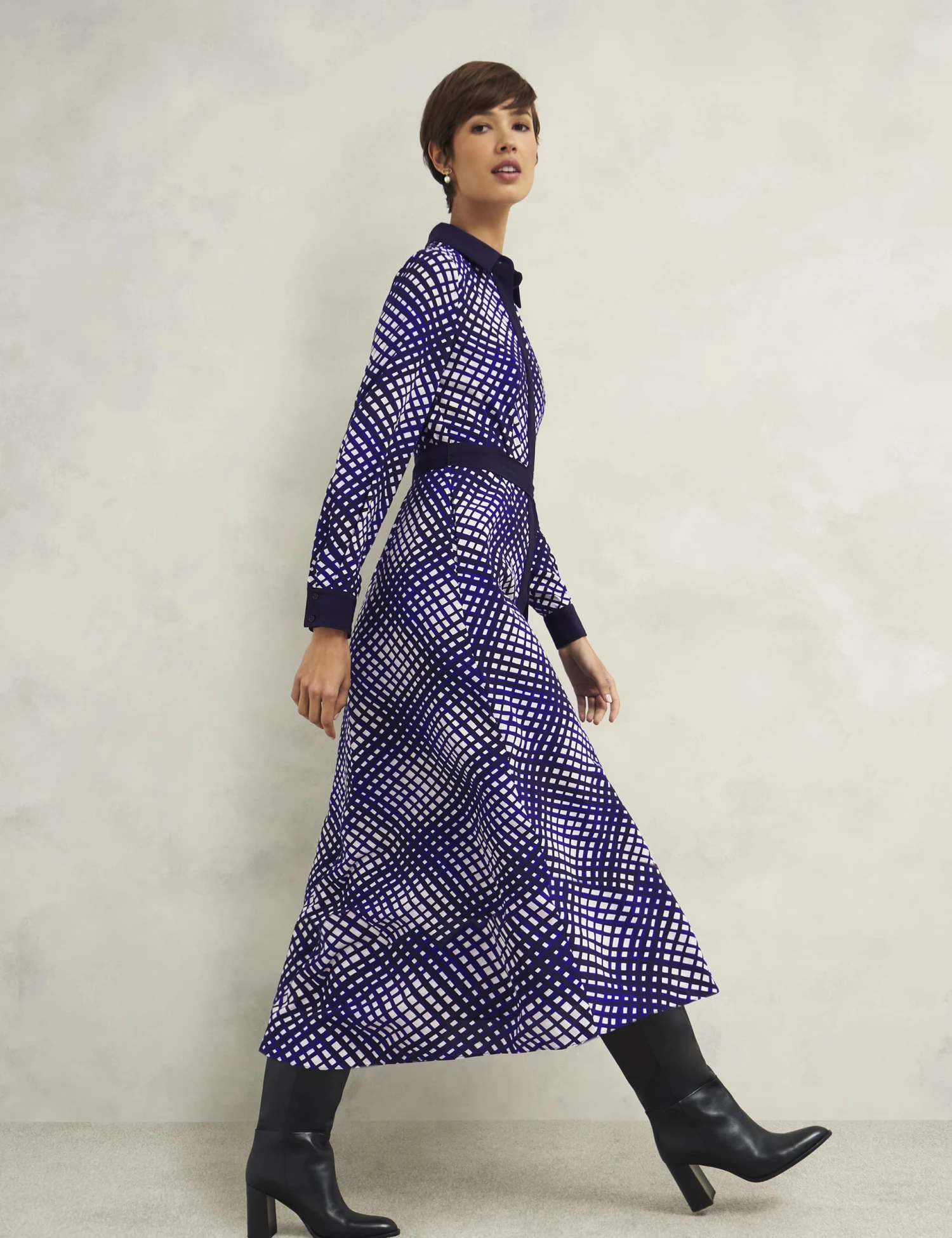This Hobbs shirt dress is a modern take on the timeless checked design. It’s cut in an easy regular fit, with a collared neckline that leads to a button placket at the front to provide a smart look. A belted waist and a midaxi-length skirt create a flattering shape. The long sleeves have buttoned cuffs for a neat finish.