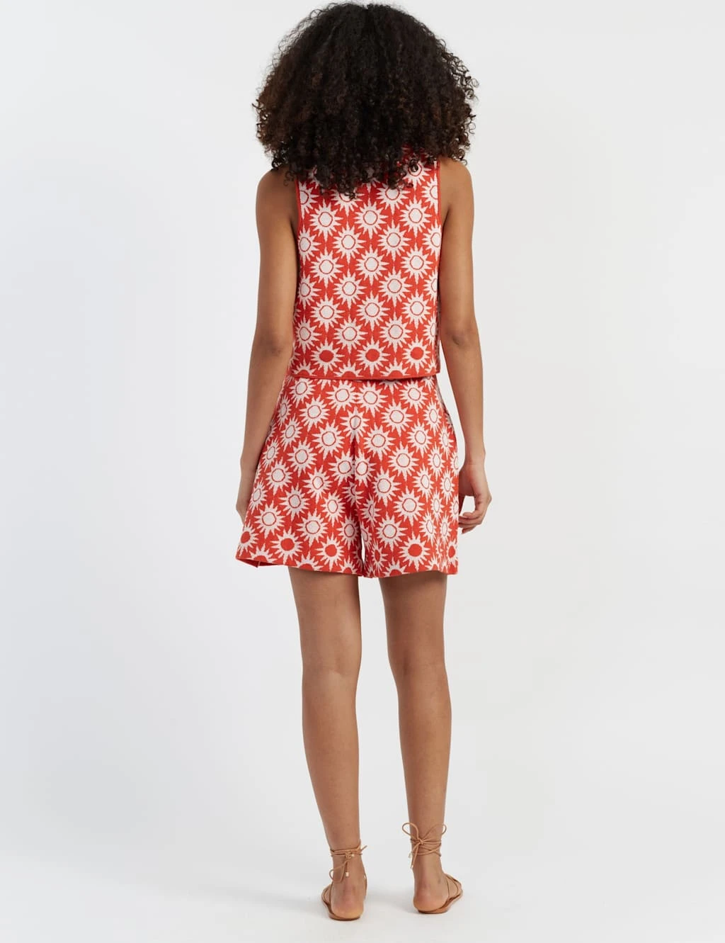 Create a summer-ready look in an instant with these pure cotton shorts from Chinti & Parker’s Laura Whitmore edit. The high-waisted A-line style creates a flattering silhouette, with an elasticated waistband providing a comfortable fit. Two front pleats add a subtle drape, while the pretty sunflower print gives the design a fresh feel.
