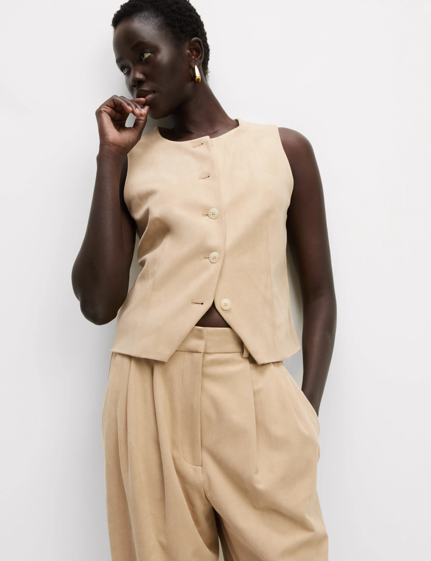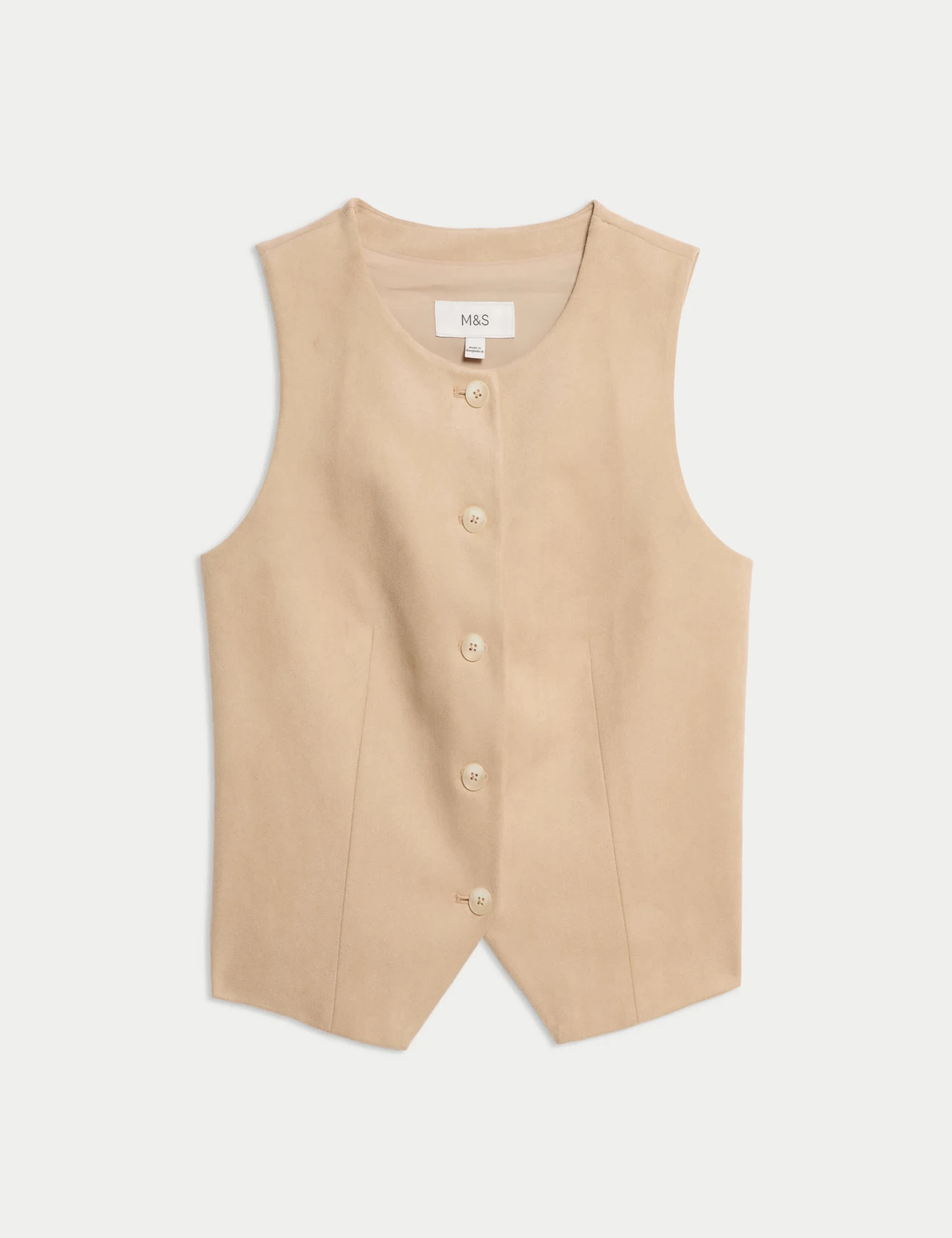 This suedette waistcoat will add a touch of boho style to your outfits. It’s designed in a regular fit, with added stretch for comfort. The collarless piece fastens with a row of buttons, while two patch pockets on the front add a practical touch. M&S Collection: easy-to-wear wardrobe staples that combine classic and contemporary styles.