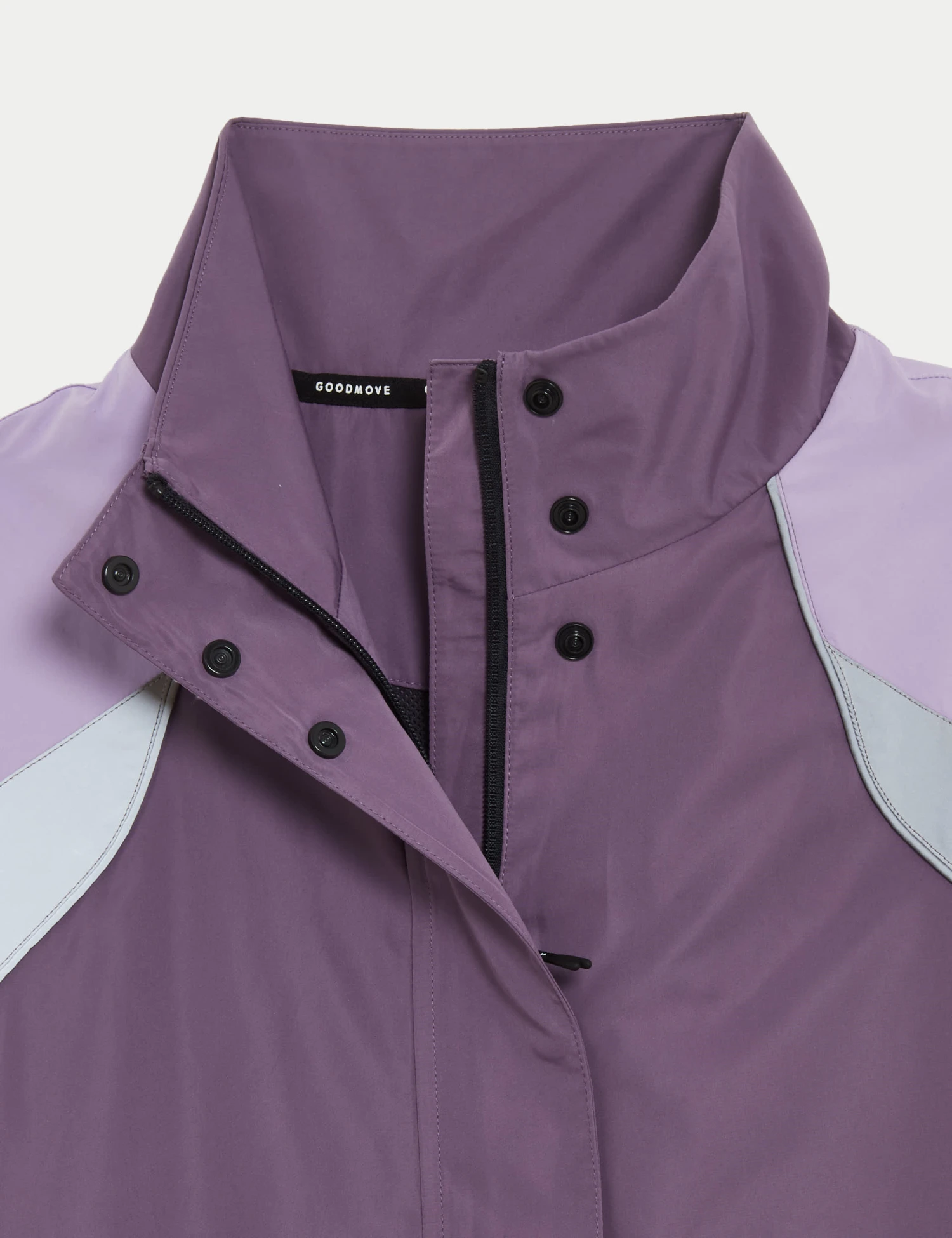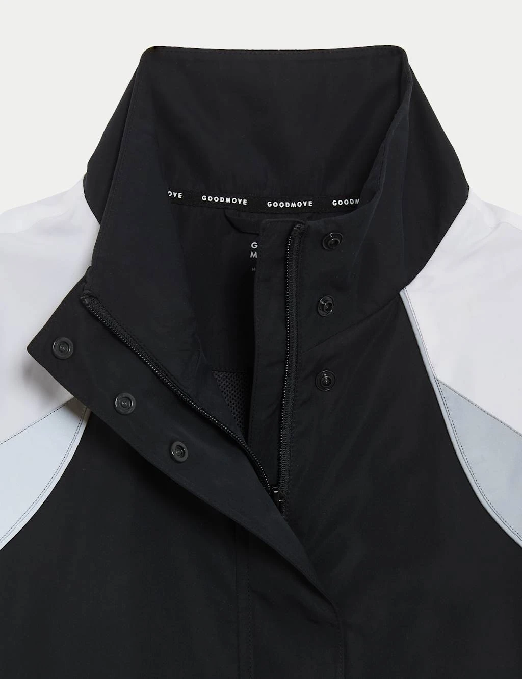 This colour-block sports jacket from our Goodmove collection is made for outdoor workouts. It comes in an easy relaxed fit, with a popper funnel neck and a zip-through design to keep out the cold. The Stormwear™ technology means it’s crafted with an innovative finish, ensuring protection from light rain showers. Plus, it features secure zipped side pockets.