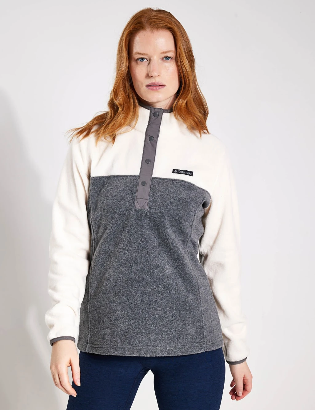 This fleece jacket from Columbia adds warm elegance to your wardrobe. The easy regular fit design features a half-popper fastening on the chest to give a neat look. It has a stylish funnel neck for an extra cosy feel and a branded tag on the chest for a premium finishing touch.