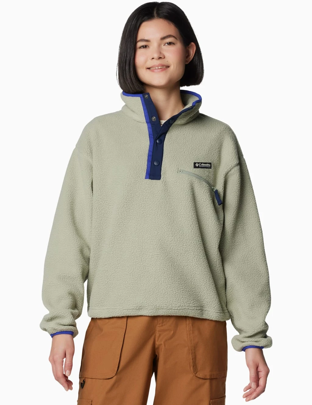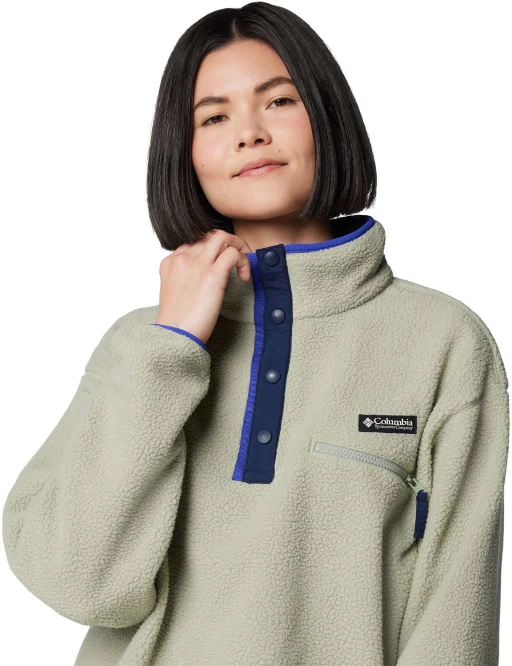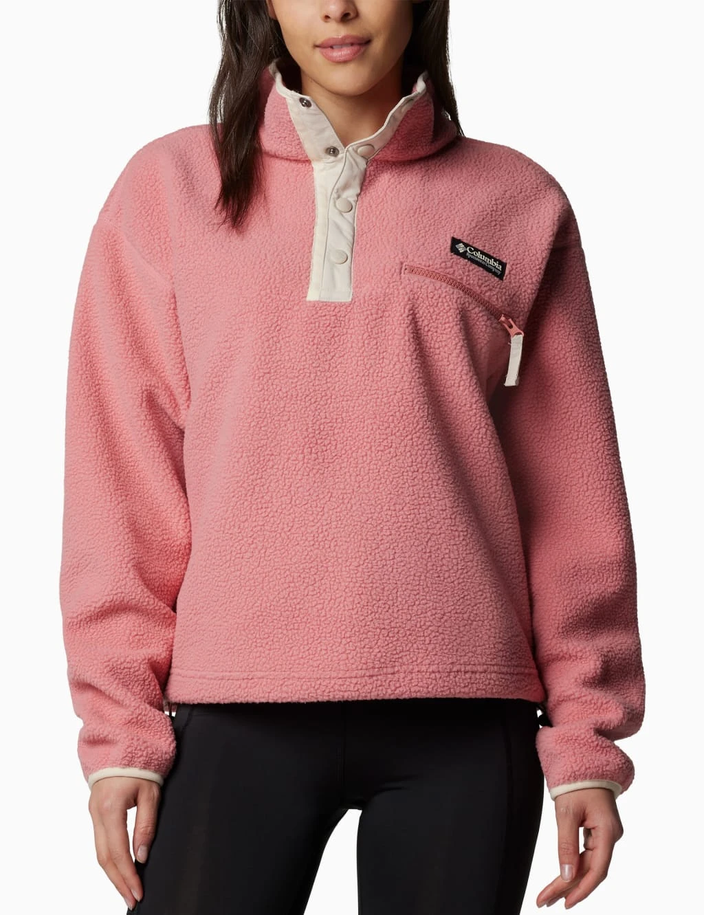 This Columbia fleece sweatshirt is made from a soft, cosy fabric that makes it perfect for layering. It’s designed in a regular fit, with a half-popper fastening and a high funnel neck for extra coverage. Extra long sleeves, dropped shoulders and a zipped chest pocket enhance the piece’s laid-back look. Colourblock trims and branded detailing lend added interest.