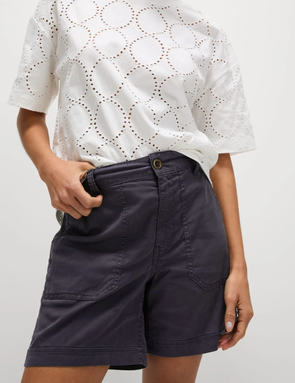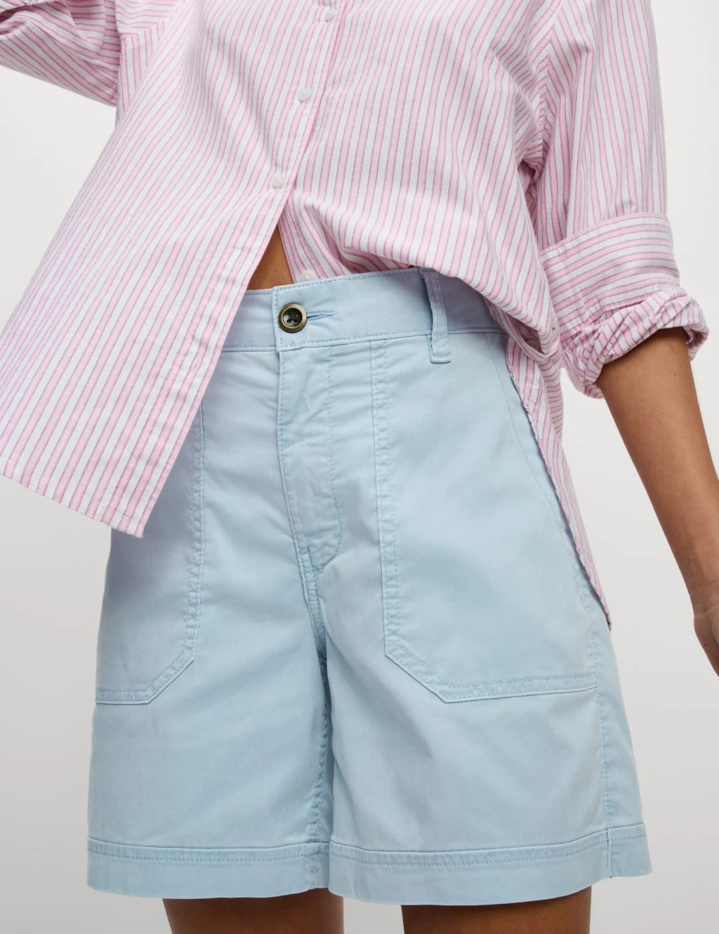 These cotton-blend cargo shorts are a casual essential. They feature a flattering mid-rise waist and have a comfy regular fit. The design is garment-dyed for a unique, lived-in look, and features a smart button-and-zip fastening. Deep cargo pockets complete the practical pair. M&S Collection: easy-to-wear wardrobe staples that combine classic and contemporary styles.