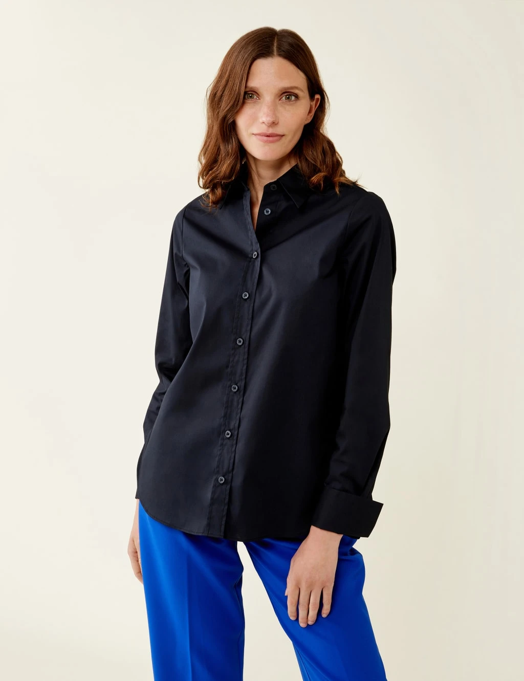 For work days or evenings out, this cotton-rich Finery London shirt will make a sophisticated impression. It’s cut to a regular fit and features a classic collar and smart long sleeves with turned-up cuffs. Deep pleats at the back and slits at the sides bring a contemporary feel.