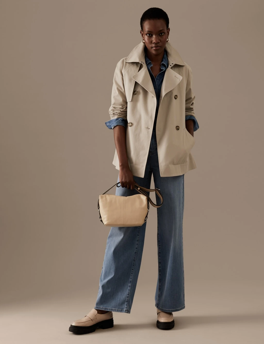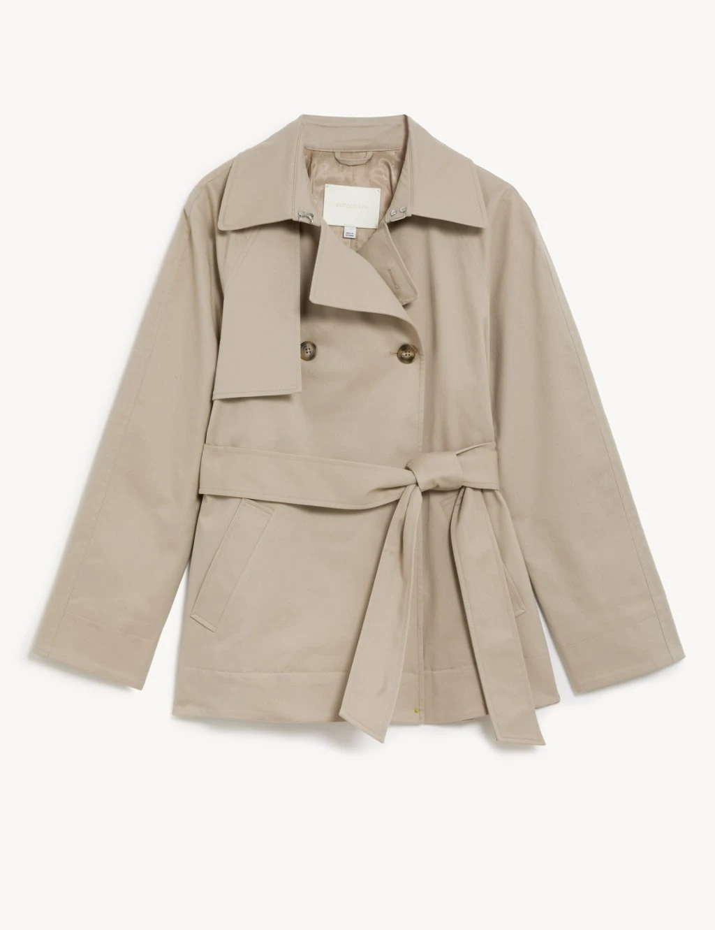 Elevate your work or weekend look with this cotton-rich cropped trench coat from our Autograph collection. This regular fit piece is designed with a classic double breasted front, complete with button fastenings and a tie-belt to accentuate your waistline. We’ve added a lining for extra comfort, plus two side pockets for all your essentials.
