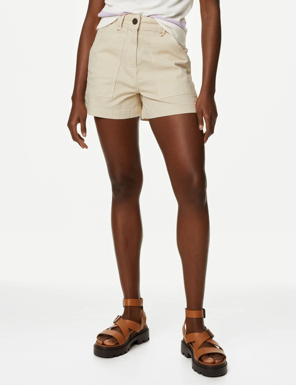 These shorts are designed to be functional and stylish, making them the perfect addition to your summer wardrobe. They come in a trendy high waist and wide leg shape that adds a modern touch to your outfit. The two carpenter pockets on the front are practical, providing ample space for storing small essentials. The two back pockets add extra functionality and style. The button and zip fastening provide added convenience and security. M&S Collection: easy-to-wear wardrobe staples that combine classic and contemporary styles.
