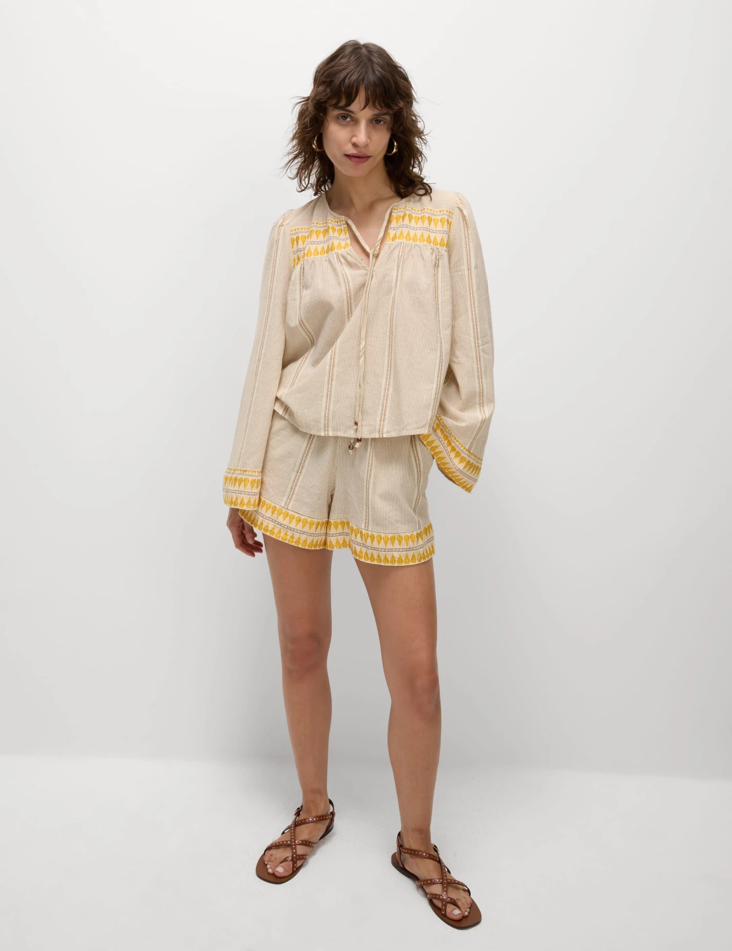 These cotton-rich shorts are a striking addition to your beachwear wardrobe. They’re designed in a regular fit, with a drawstring fastening for comfy wear and two side slip pockets. A jacquard pattern and beads on the tie add elevated detail.M&S Collection: easy-to-wear wardrobe staples that combine classic and contemporary styles.