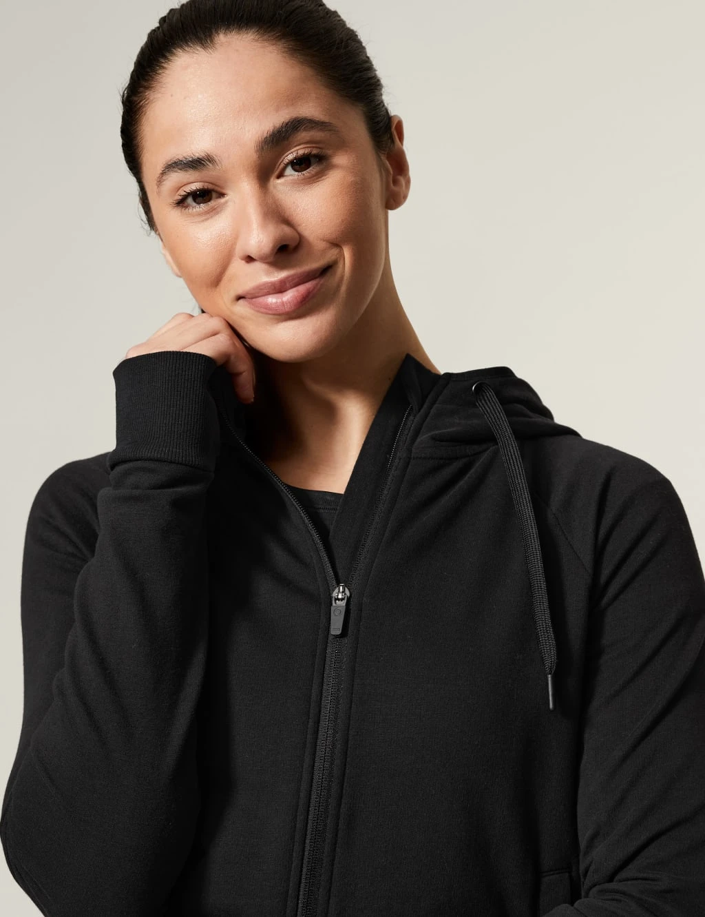 This super-soft hoodie from our Goodmove collection is made from a breathable cotton-rich fabric that’ll keep you comfy. Regular fit, with long sleeves and a warm hooded neck. We’ve added a touch of stretch for easy movement, plus thumbholes for cosy wear. Finished with a zip fastening and secure zip pockets, plus a subtle logo at the ribbed hem. We only ever use responsibly sourced cotton for our clothes.