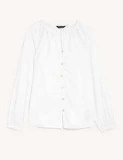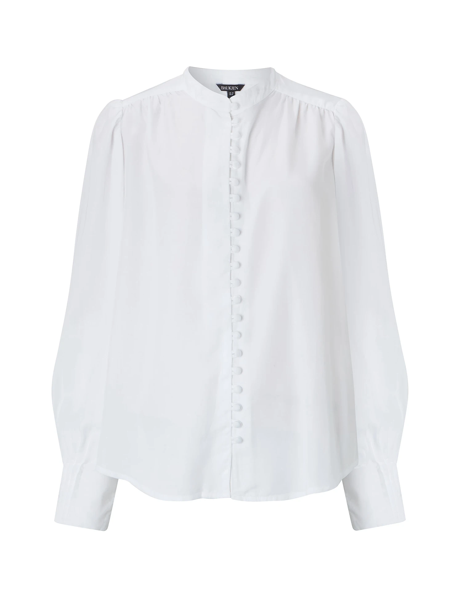 Whether you’re dressing up or down, this timeless Baukjen blouse creates a modern look. It’s cut to an easy regular fit, with a crew neckline and slightly puffed sleeves. Gathering along the shoulders and pintuck pleats at the cuffs add texture and structure to the silhouette. The piece is finished with loops on the button fastenings for intricate detail.
