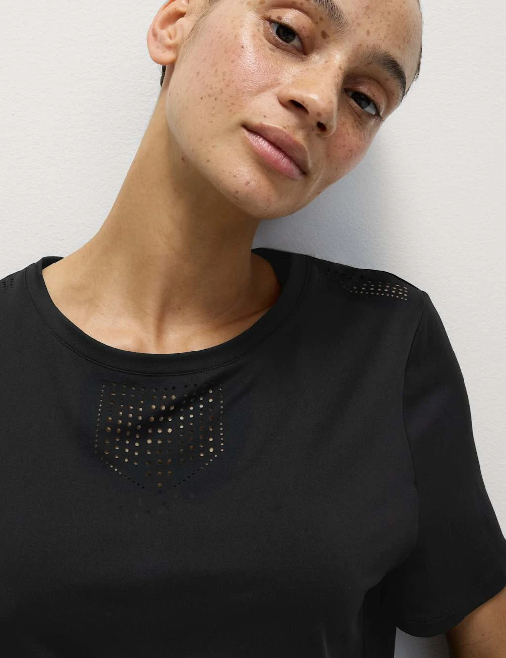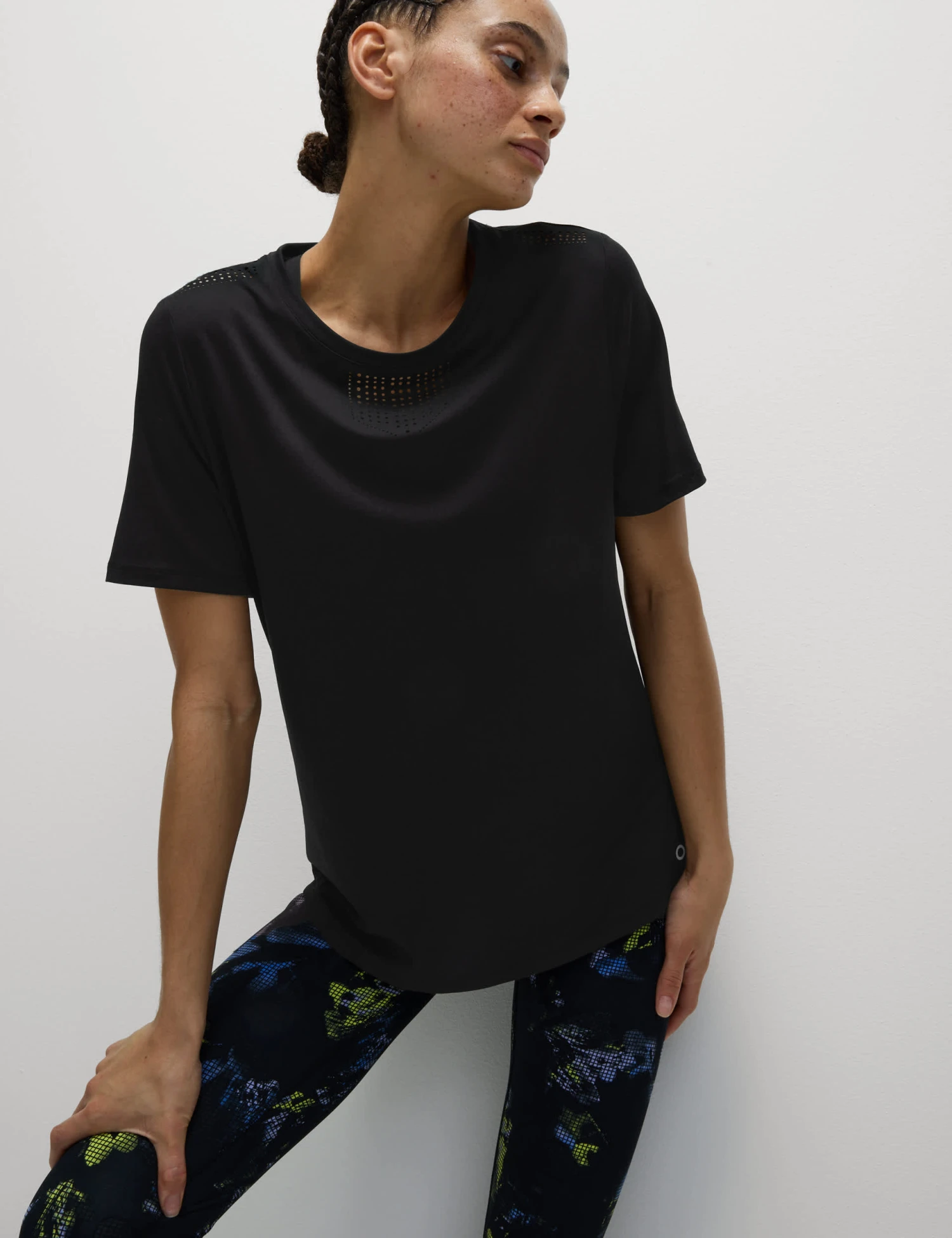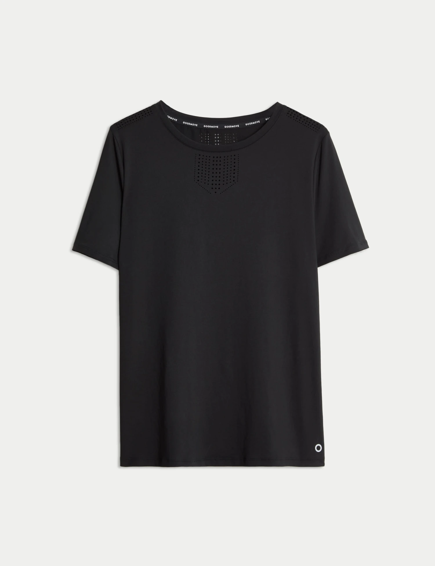 Update your workout gear with this t-shirt from our Goodmove collection. Its moisture-wicking, quick-drying, and breathable fabric will keep you cool and comfortable during daily gym sessions. This practical piece is made with added stretch for ease of movement, while the laser-cut detailing on the shoulders, front, and back delivers added ventilation.