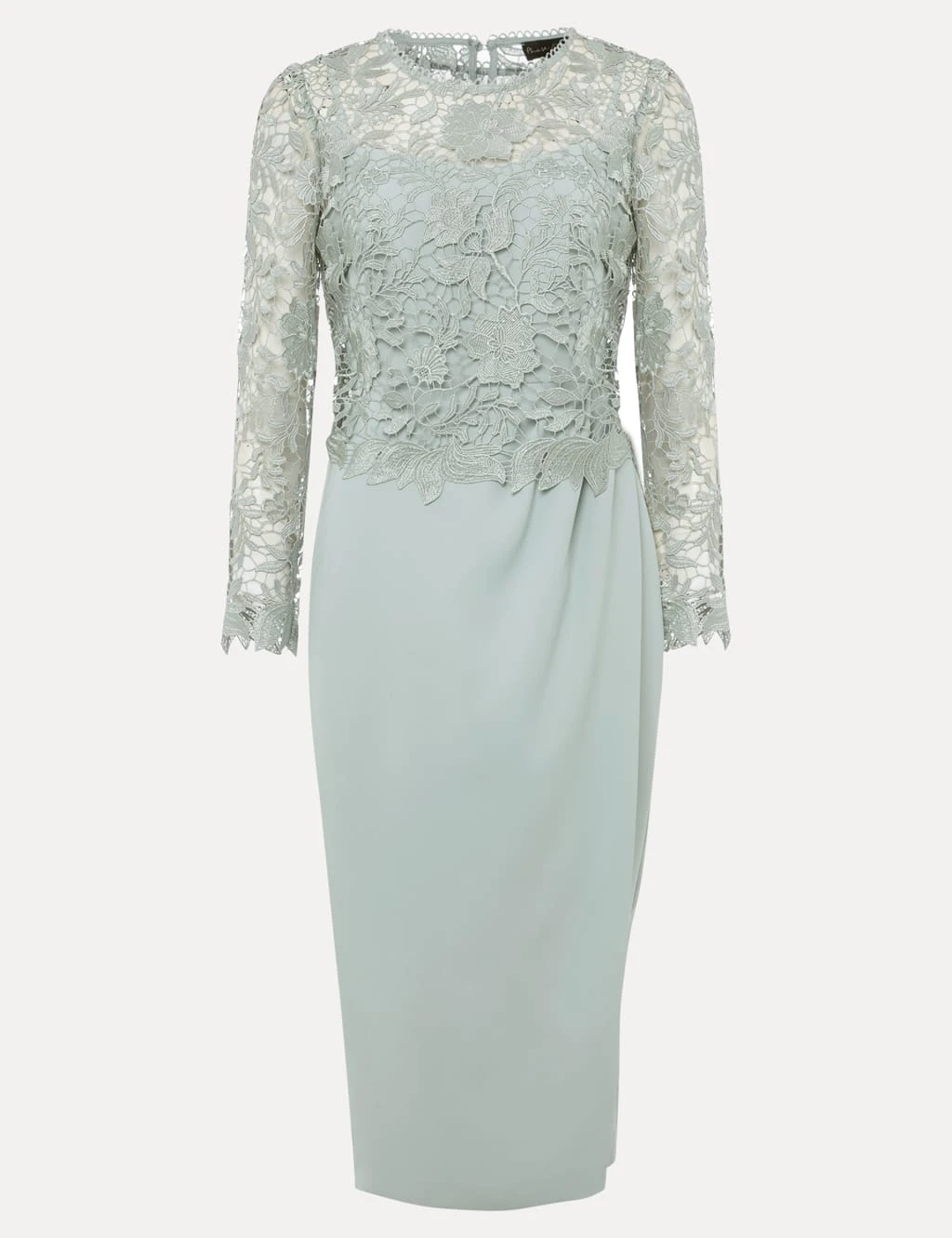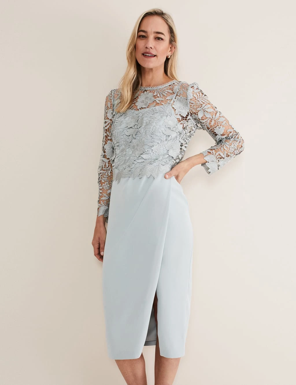 This beautiful Phase Eight column dress has a double layered design so you can wear it your way. It’s cut in a comfortable regular fit, with a removable lace bodice complete with long sleeves and a simple round neckline. Spaghetti straps and a square neck create a flattering look. Ruching at the waistline gives a subtle drapey effect to the midaxi skirt. Plus, there’s a side split for a flirty finish.