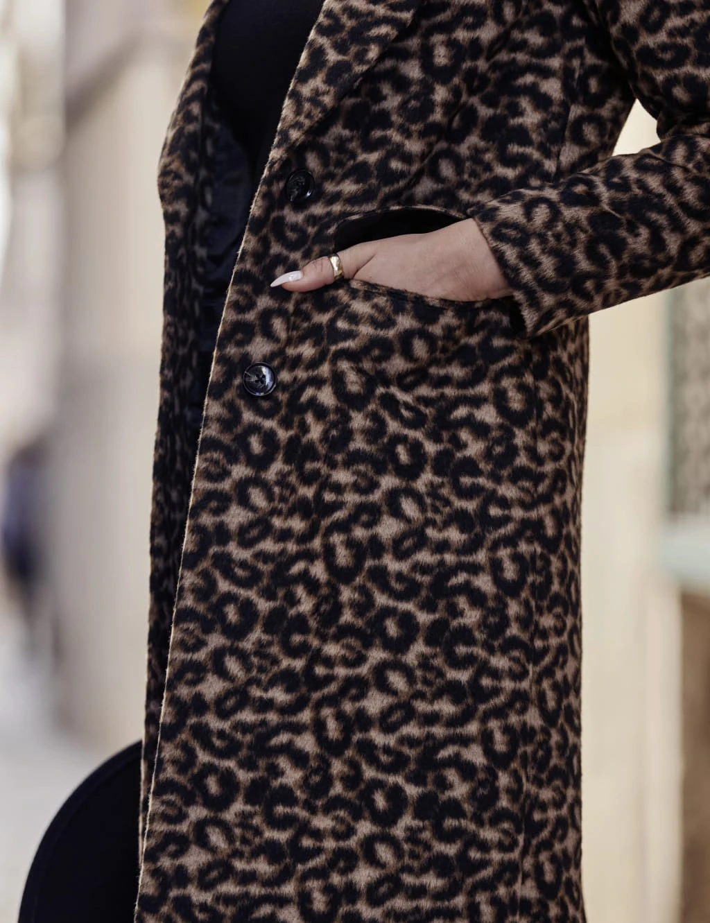 Bring a touch of luxury to your cold-weather wardrobe with this faux fur coat by Sosandar. It’s made in a regular fit and features a statement leopard print design. This piece is cut to a longline silhouette for added coverage and has a neat front button fastening. Two side flap pockets add a handy finish.