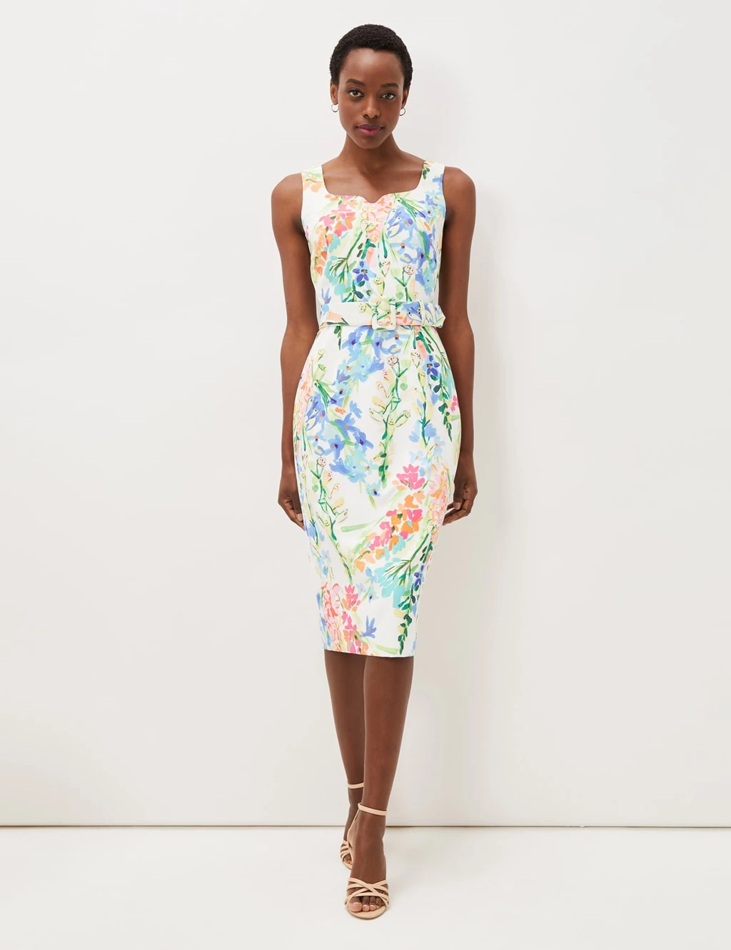 Make an entrance at your next event in this floral bodycon dress from Phase Eight. This sleeveless style is cut to a regular fit, with an elegant sweetheart neckline and back. A matching belt enhances the waist and gives this midi a vintage-inspired feel.