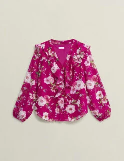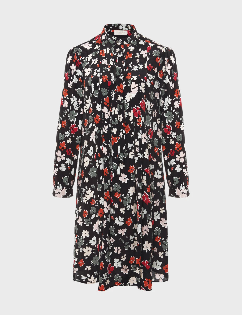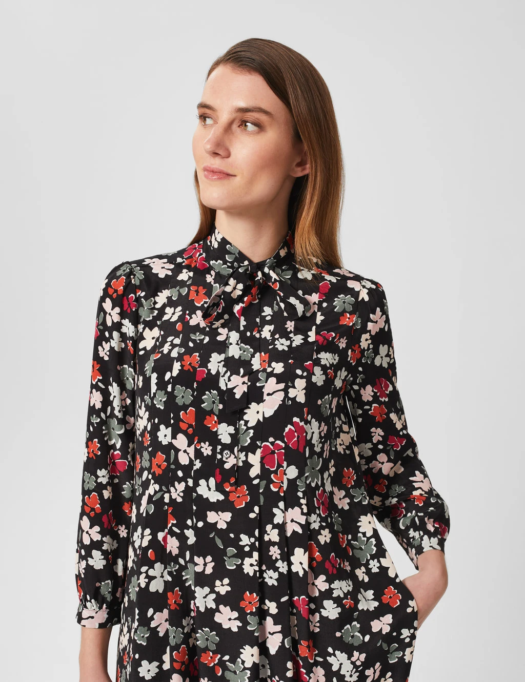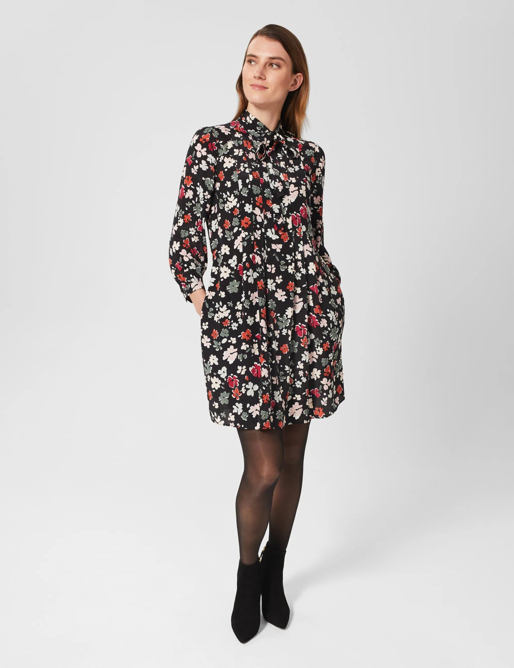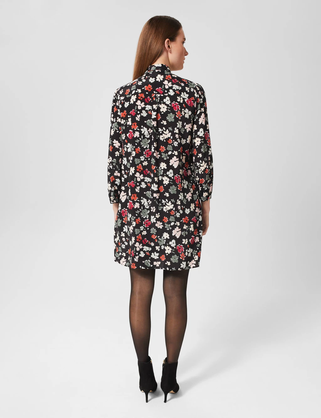 This floral shirt dress by Hobbs brims with dainty details. Cut to a regular fit, it hangs fluidly on the body with a playful mini length. A high tie neckline and gathered three-quarter sleeves lend a feminine flair to the design. Panelling through the chest adds extra appeal.