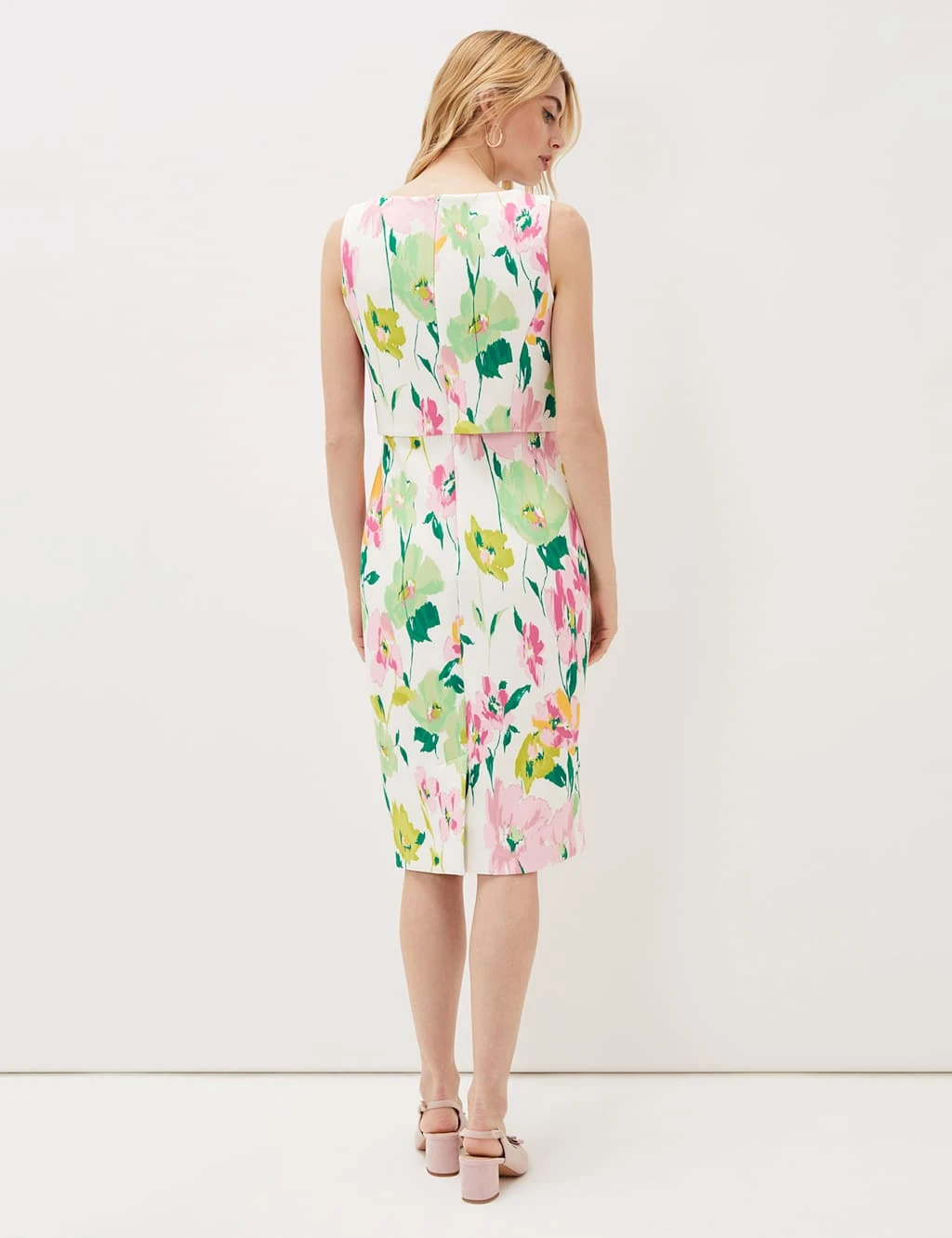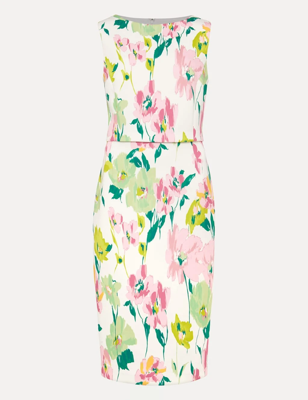 Painterly florals give this Phase Eight shift dress a fresh, summery look. This sleeveless style is designed in a regular fit, which gently skims the waist and hips before falling to the knee. A round neckline creates a minimal finish.