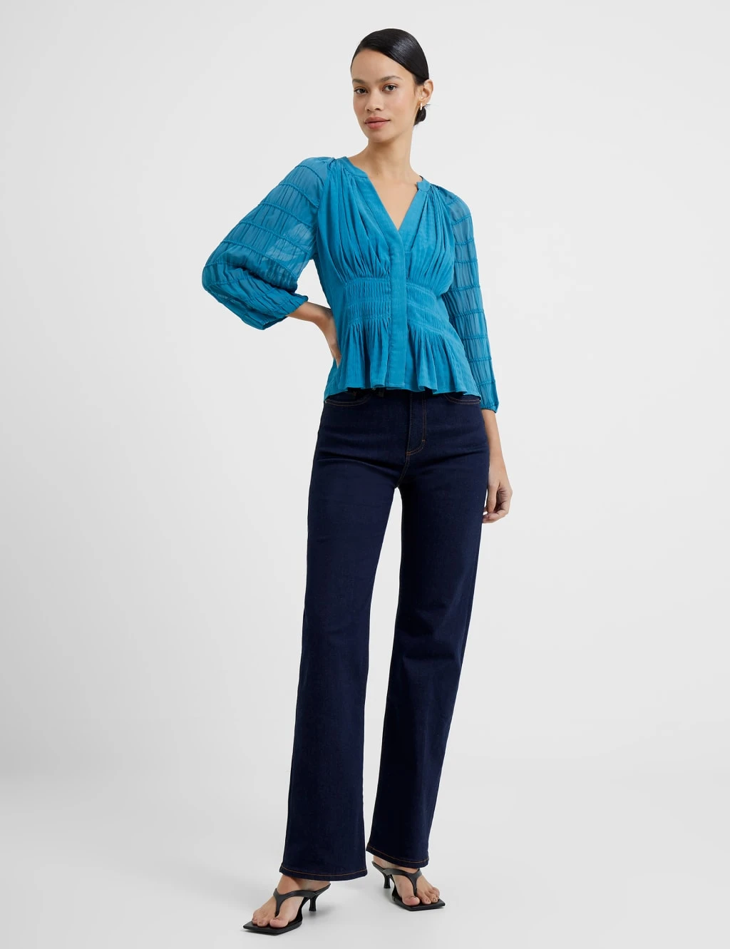 Add delicate detailing to your top collection with this pleated blouse from French Connection. It’s cut to an easy-to-wear relaxed fit with gentle smocking at the waist. The top features a flattering v-neckline and textured three-quarter balloon sleeves, which are semi-sheer for added allure.