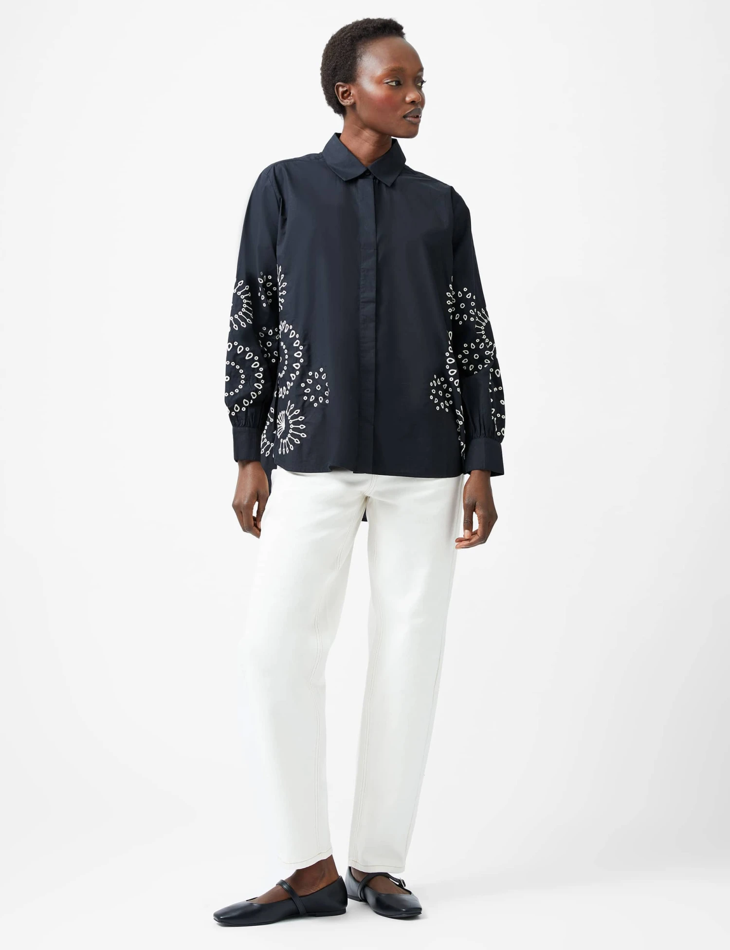This pure cotton shirt by French Connection is embroidered with a statement floral motif for a striking look. It’s made in a comfy regular fit, with front button fastenings tucked behind a neat concealed placket. A collared neckline and long cuffed sleeves ensure a polished finish.