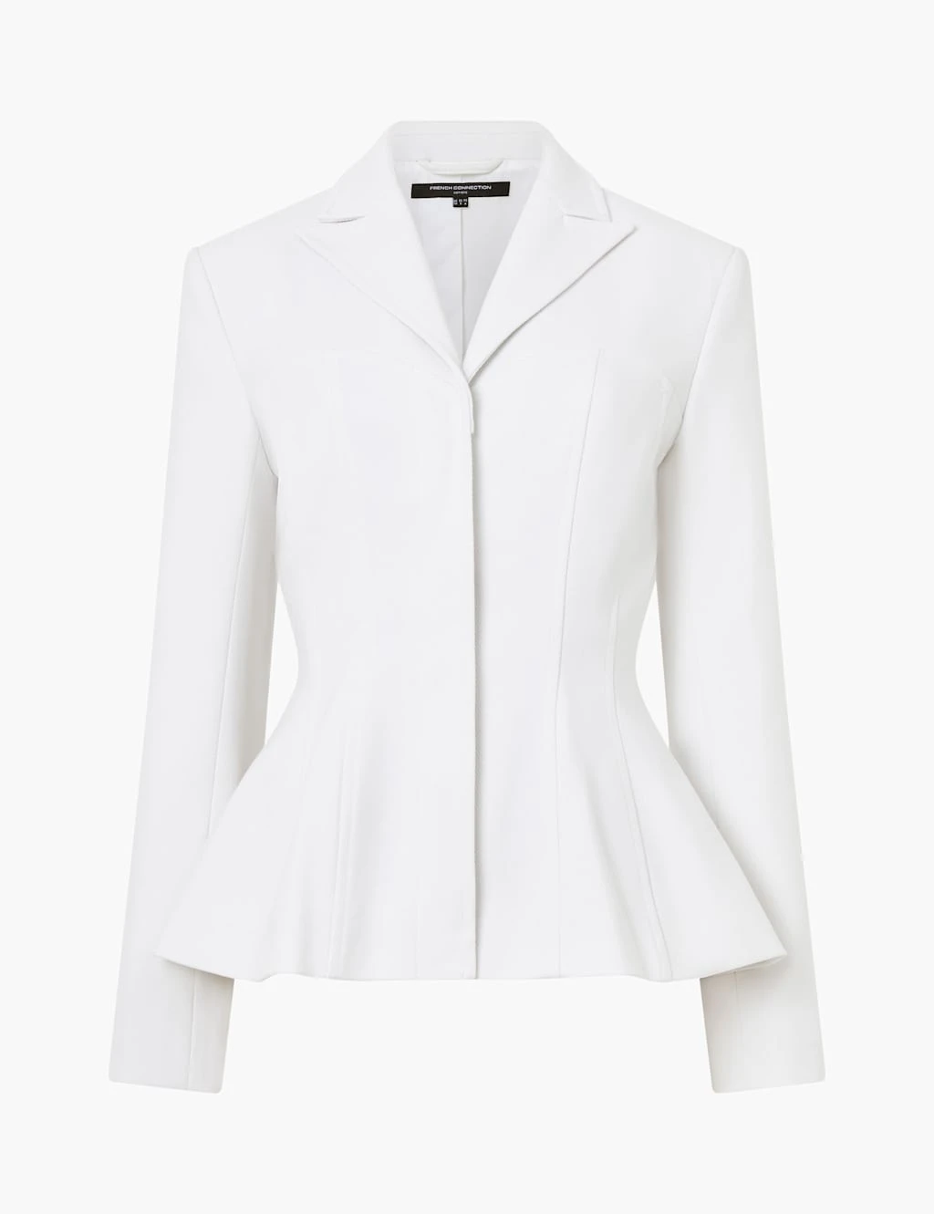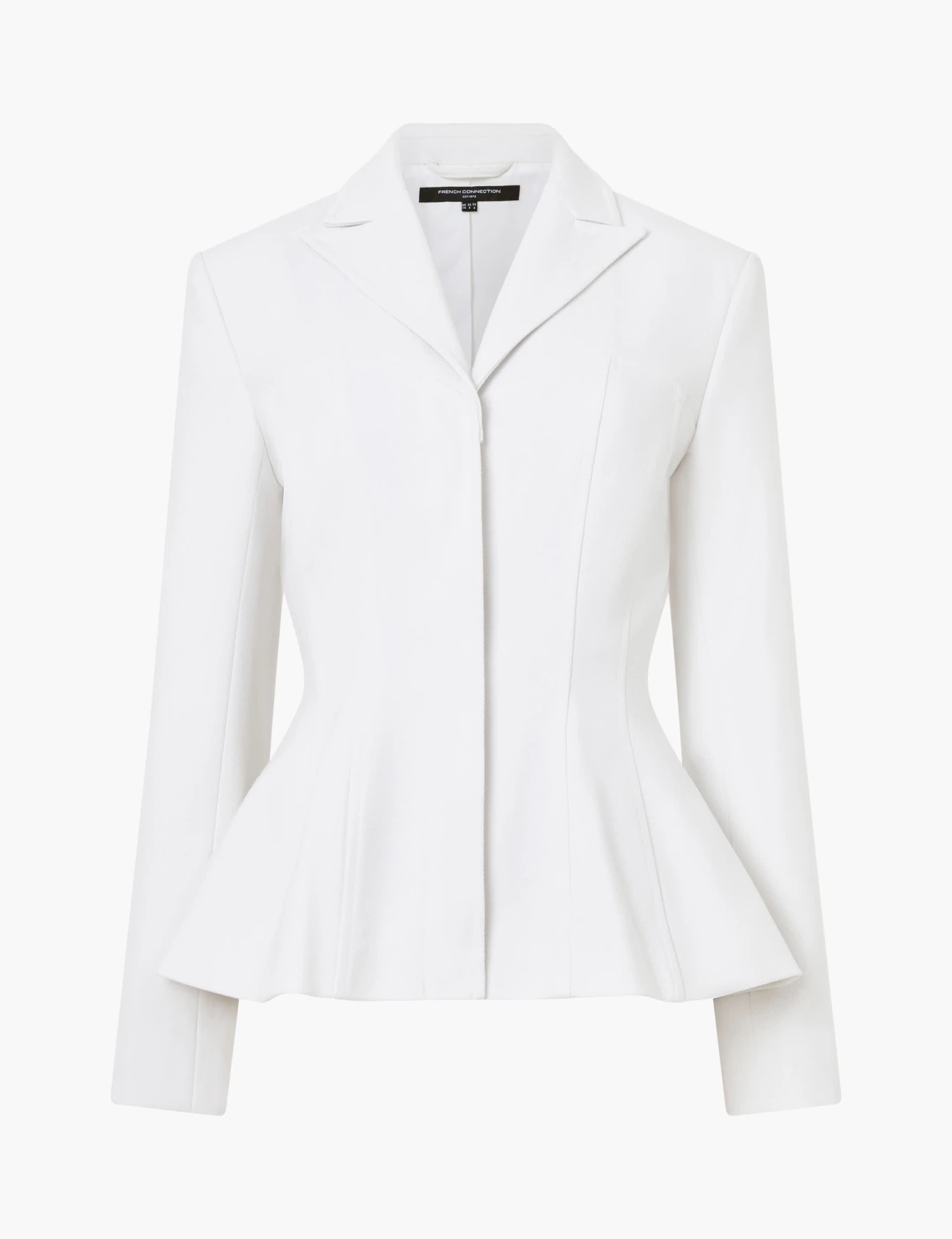 Pull together your next smart outfit with this striking French Connection twill blazer. This single-breasted piece has long, slim sleeves, a collared v-neck and hidden fastenings down the front. It nips in at the waist and flares out in a chic pelmet to finish at hip length.