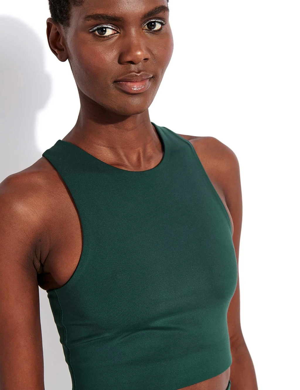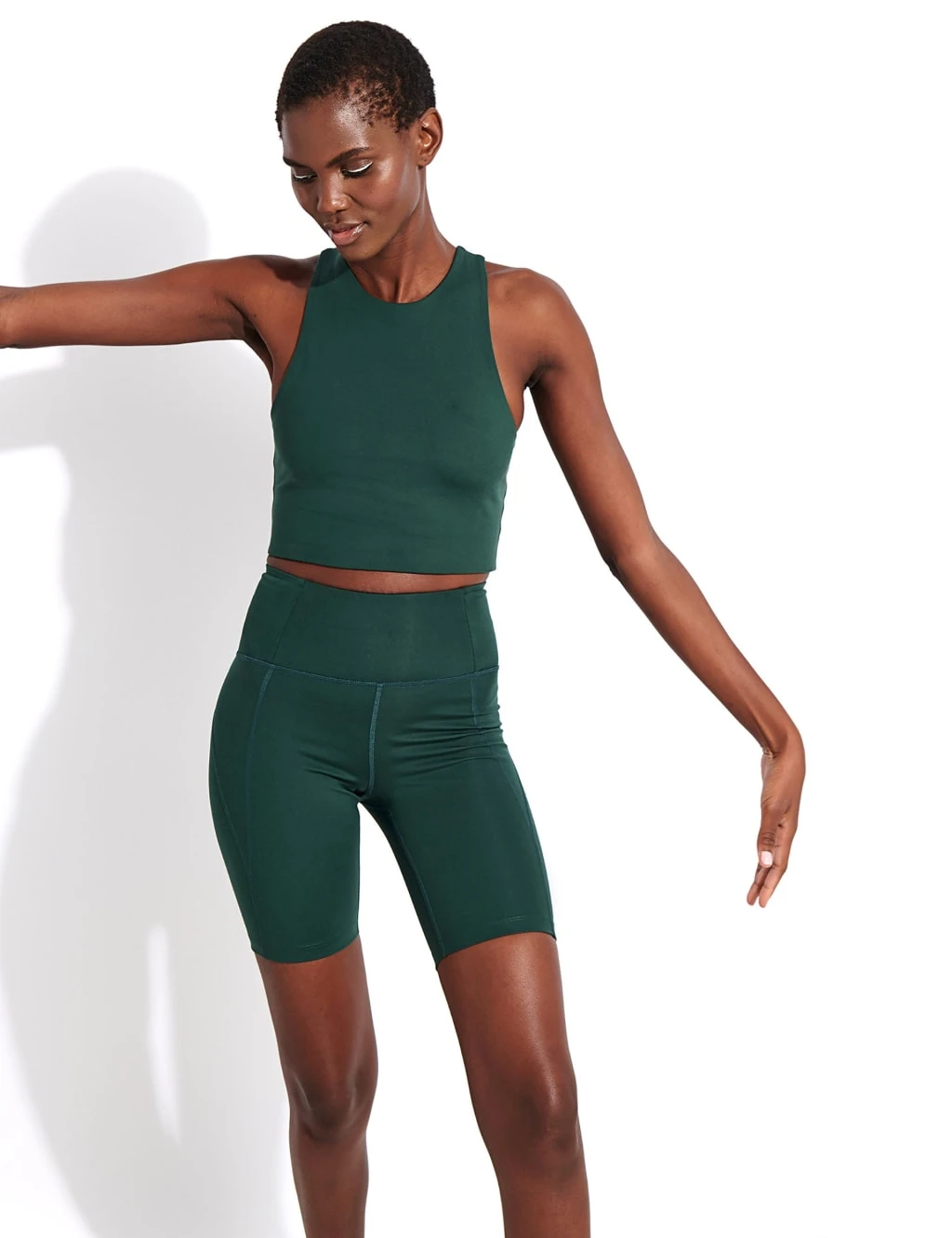 Cut a sleek figure at your next class in the Dylan sports bra from Girlfriend Collective. The in-built support band and double lined, moisture wicking fabric help provide medium support, while a non-wired silhouette keeps it comfortable as you move. It’s cut with a high neckline and racer back, offering full coverage and a stylish look.
