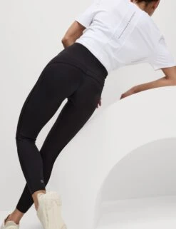 These Goodmove collection leggings are made from stretchy cotton-rich fabric for soft comfort as you train or chill. They’re cut with a wide elasticated waistband that offers subtle support and satin trims at the back to add texture. The breathable fabric wicks moisture and dries quickly to keep you cool and fresh as you work up a sweat.
