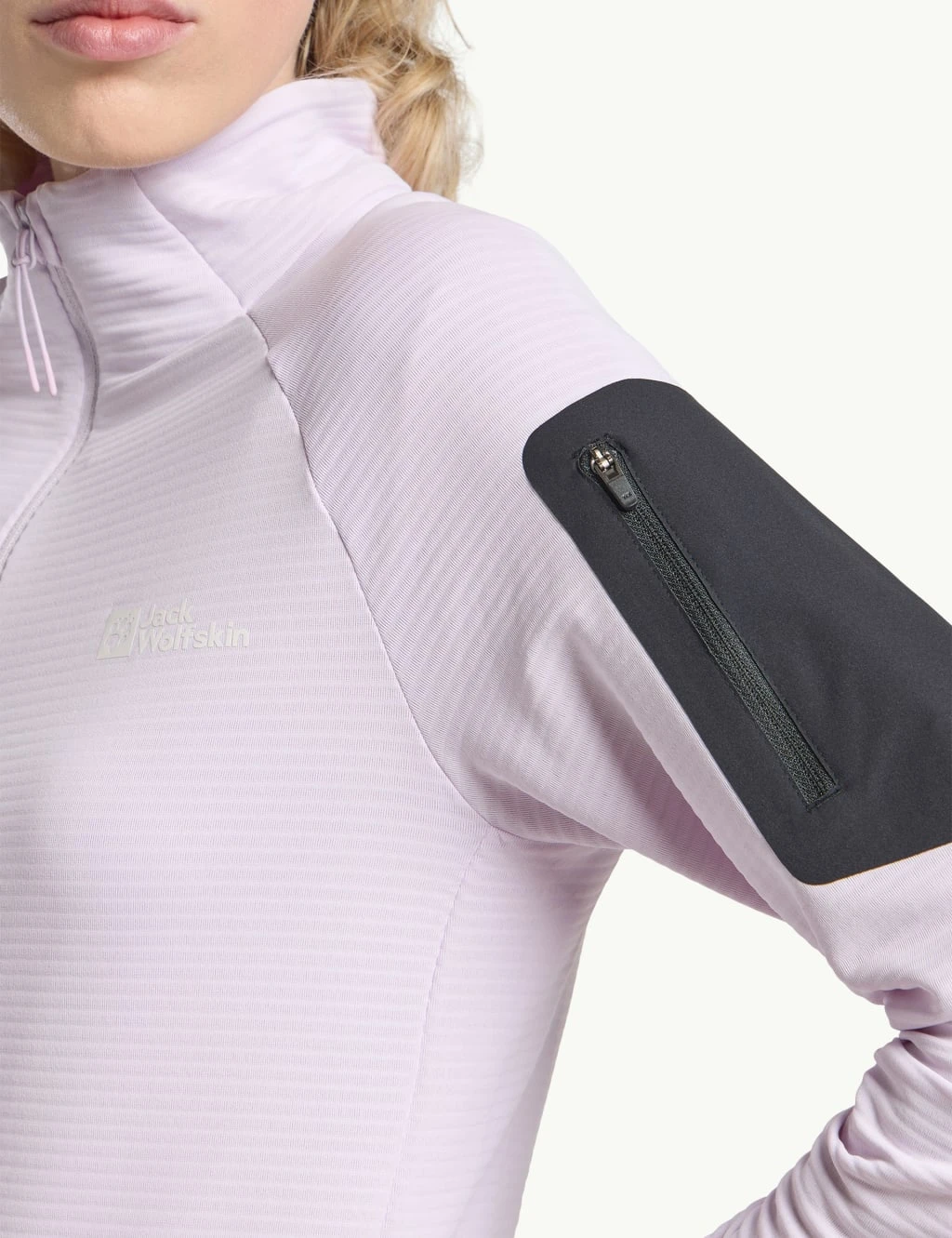 Effortlessly adapt to changing temperatures with the Prelight jacket from Jack Wolfskin. This regular fit design features a funnel neck and full zip, allowing for easy layering and ventilation on the go. Lightweight and soft, it provides just the right amount of warmth, while remaining breathable enough to keep you comfortable as you work up a sweat. A handy zipped arm pocket is perfect for securing small essentials like a credit card or key fob.