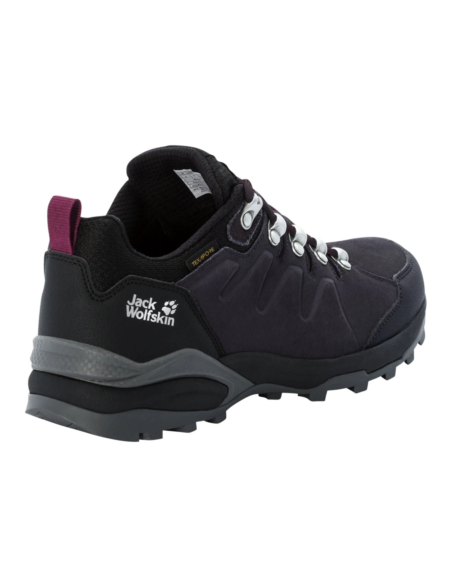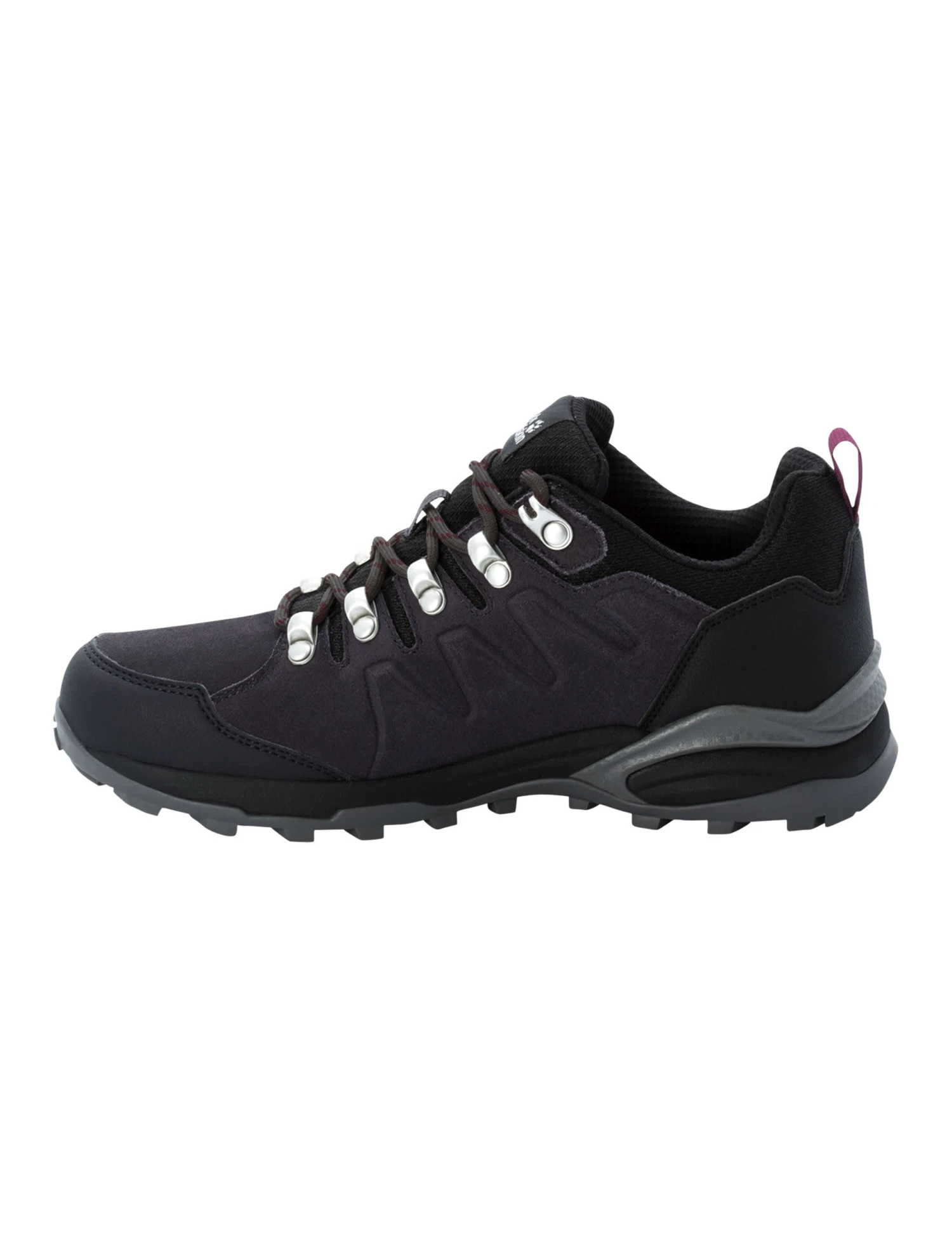 Enjoy some outdoor adventures with these Jack Wolfskin walking shoes. They’re made from smooth suede with a breathable, waterproof finish for extra protection from the elements. Metal locking hooks on the lace-up fastening offer a secure fit, while the rubber outsole provides excellent traction. The design is complete with durable stitched overlays on the toe and heel.