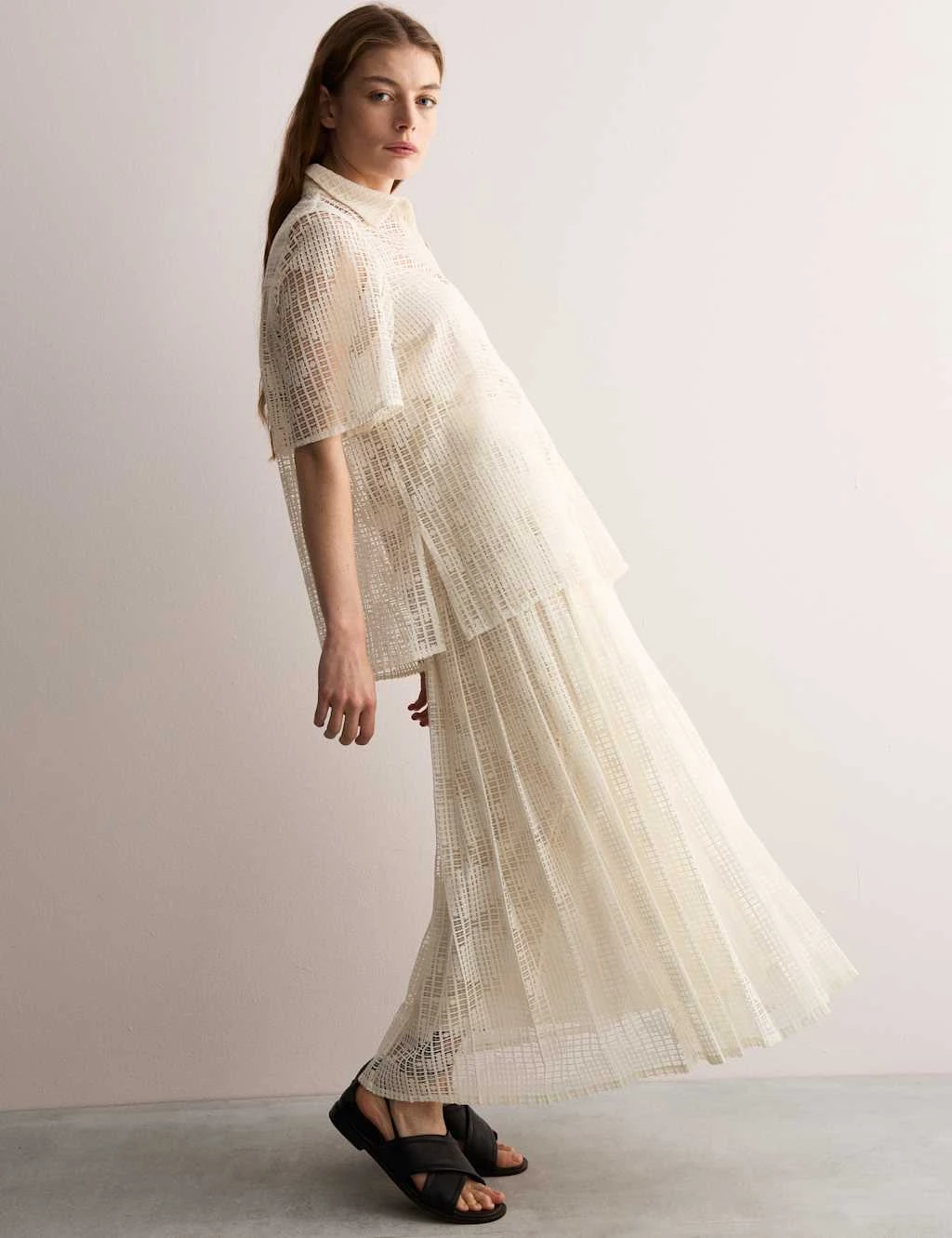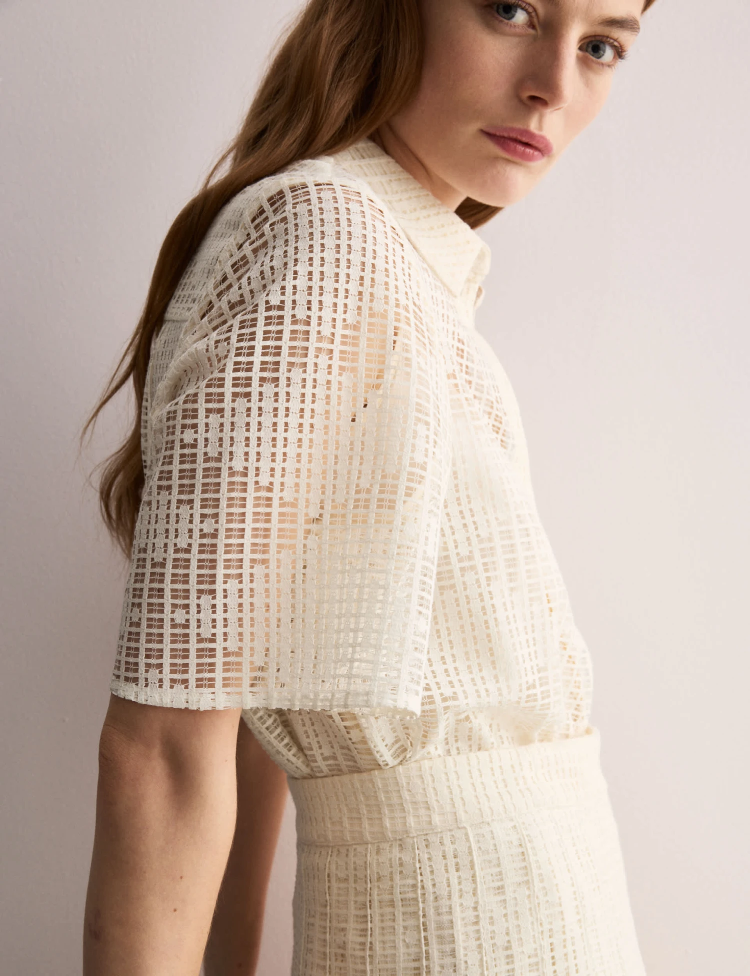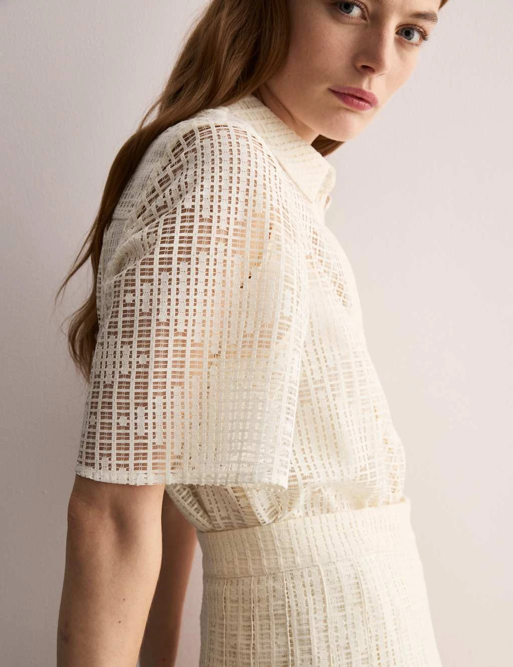 Sheer lace fabric gives this Jaeger shirt a feminine and romantic look. It’s designed in a classic regular fit with a smart collared neckline. The short sleeves make it an ideal choice for warm-weather outings, while the interior cami top provides elegant coverage.