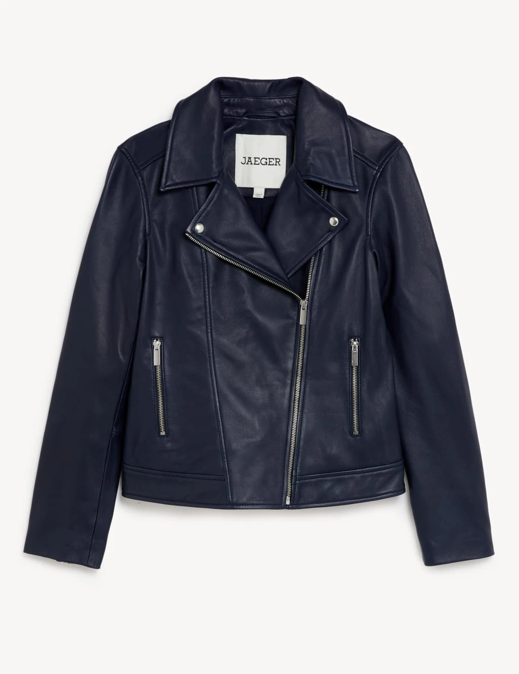 Give your look a bold edge with this leather biker jacket from Jaeger. It’s designed in an oversized fit that’s perfect for layering. Silver hardware including chunky zips and press studs on the collar delivers a classic biker look. Pair with your favourite jeans or skirt for a stylishly laid-back look.