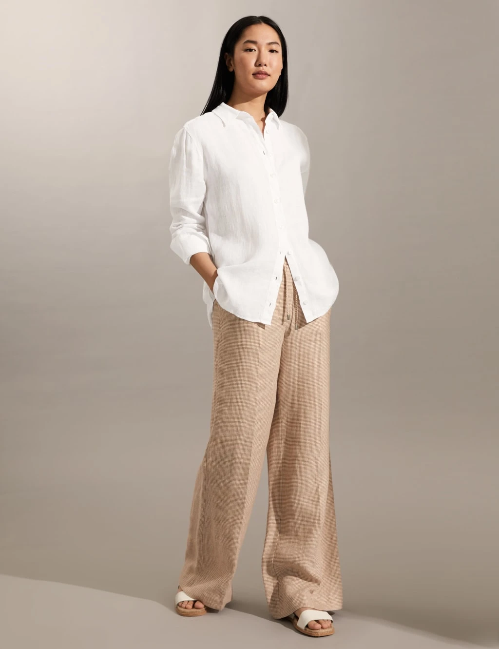 Crafted from breathable pure linen, this Jaeger shirt is a smart way to stay cool during the warmer months. This wardrobe staple is cut to a comfortable regular fit, with a classic button-through front and collar neckline. Wide cuffs add structure to its long sleeves. Tuck yours into wide-leg trousers for an effortless work ensemble.