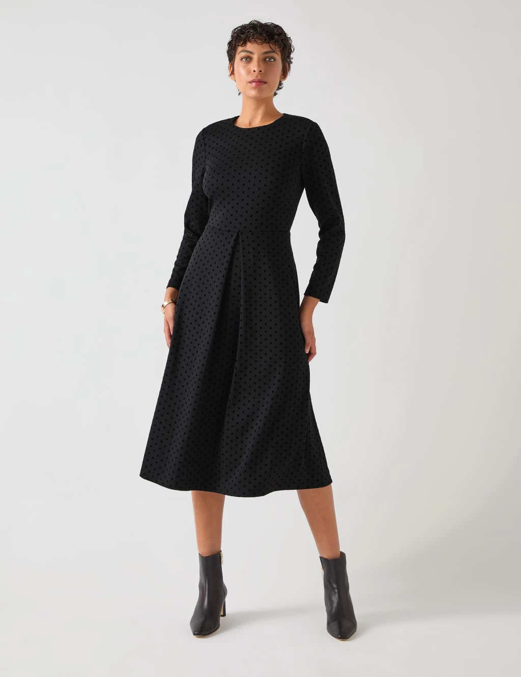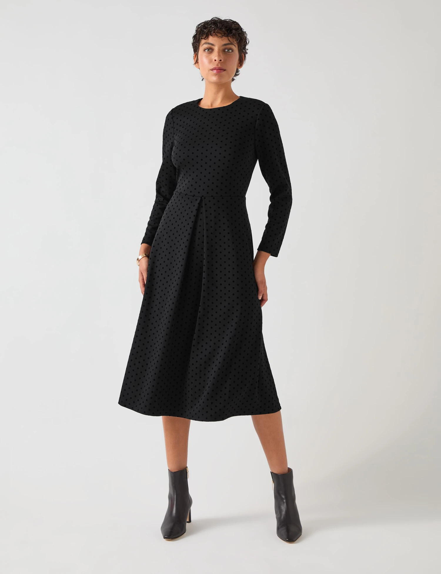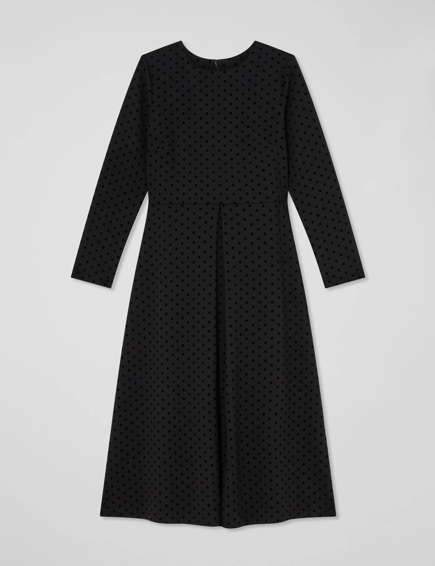 Made from jersey with flocked polka dots all over, this LK Bennett skater dress is a chic and comfortable choice. It’s made in a timeless regular fit with a simple crew neckline and flattering three-quarter sleeves. A centre pleat on the midi-length skirt creates a sophisticated finish.