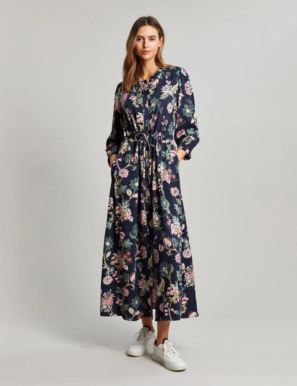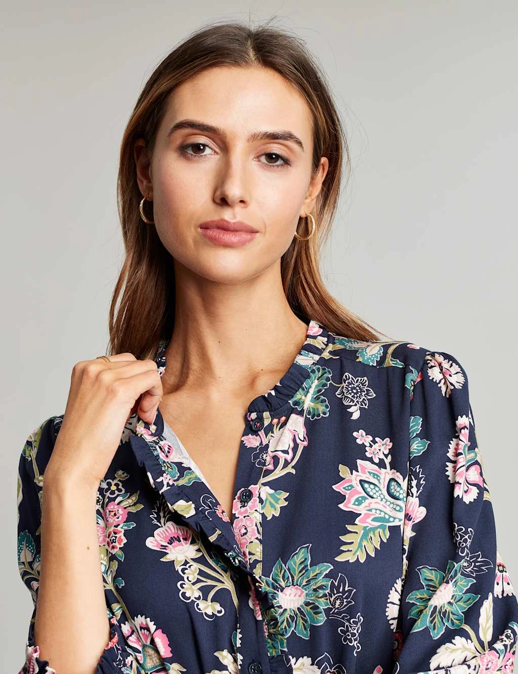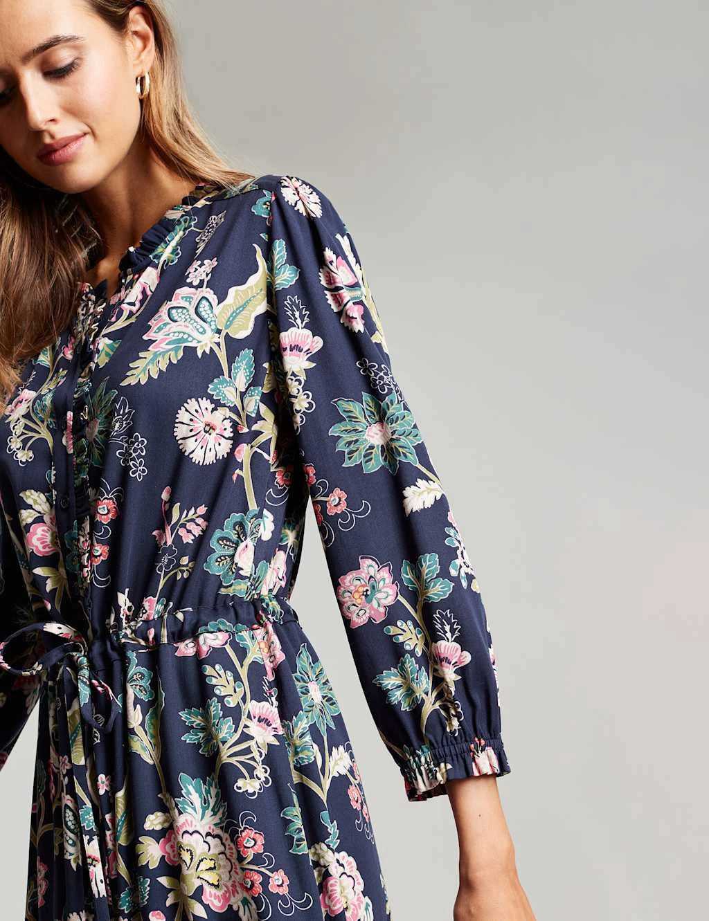 With its bold, boho-inspired floral print, this Joules shirt dress is an eye-catching take on a timeless daywear style. It’s cut in a comfy regular fit, with a feminine stand frill at the round neckline. A drawcord tie gives definition at the waist, while elasticated frilled cuffs add romantic detail to the three-quarter sleeves. Button fastenings from the neck to the midaxi-length hem ensure you can wear your new piece your way.