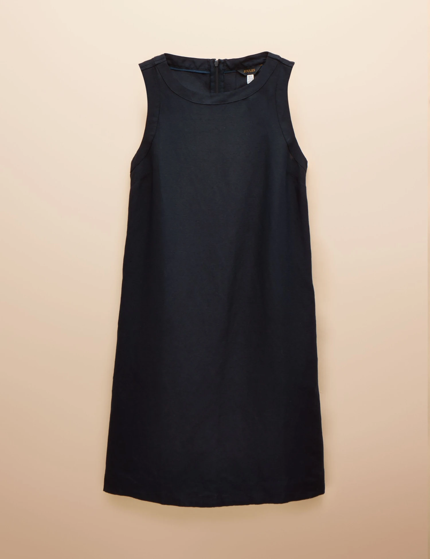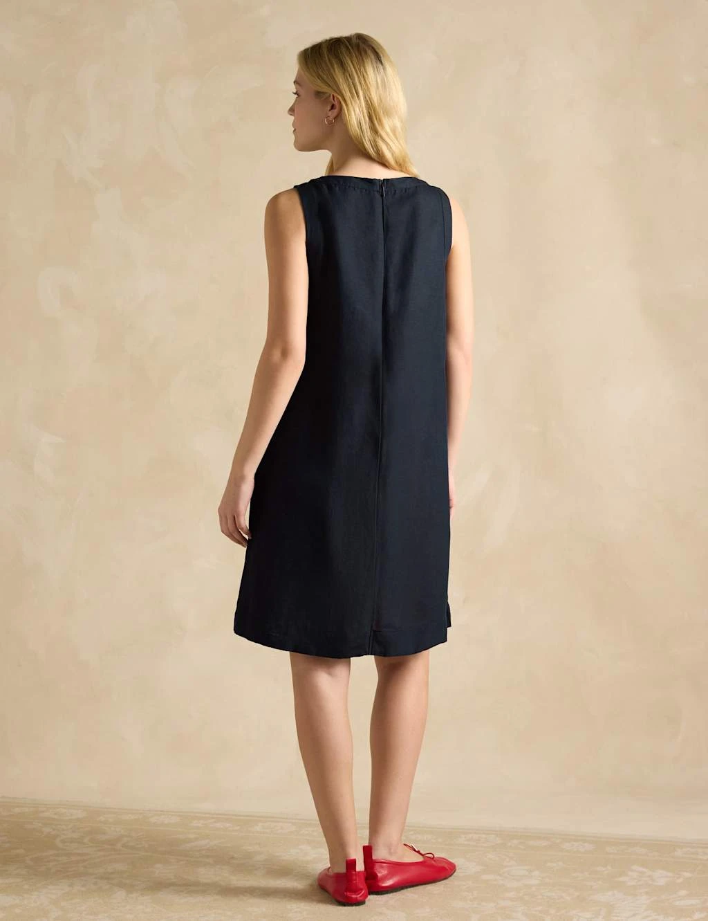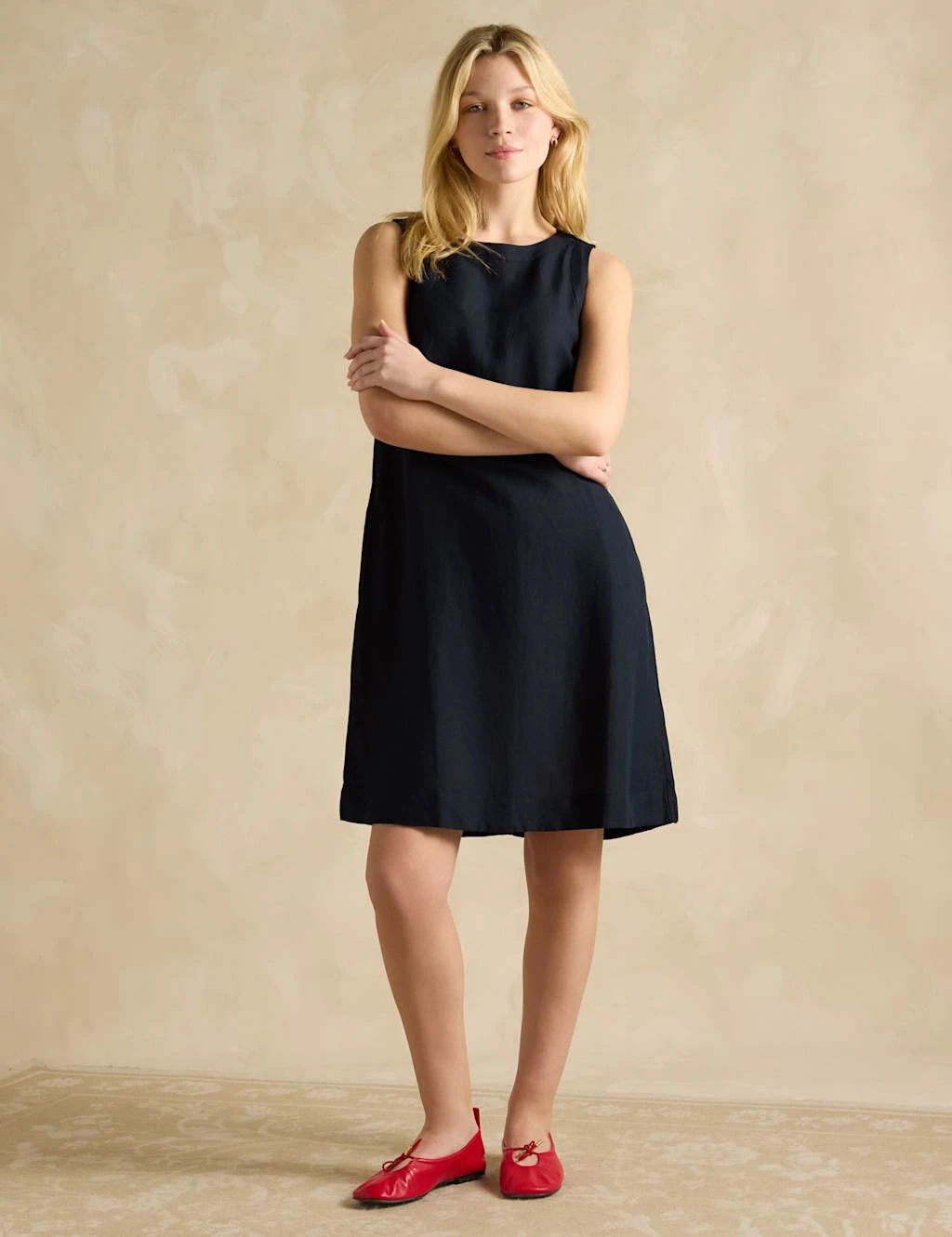 This linen-blend shift dress from Joules is a versatile choice for warm weather. It’s cut in a regular fit, with a round neckline and a sleeveless bodice. A back zip fastening ensures a neat look. This piece falls to the knee for a flattering silhouette.