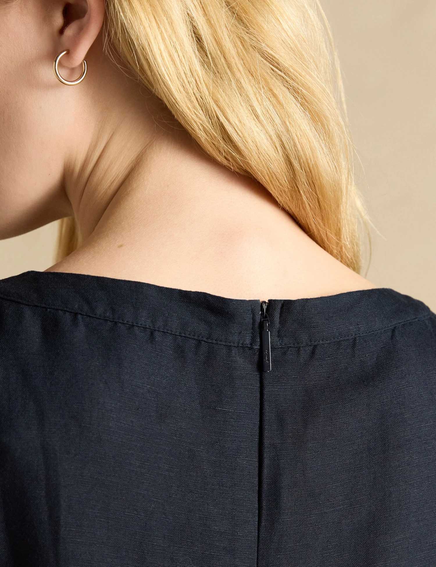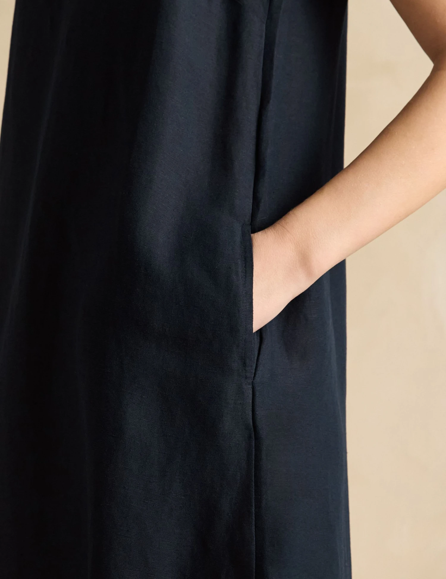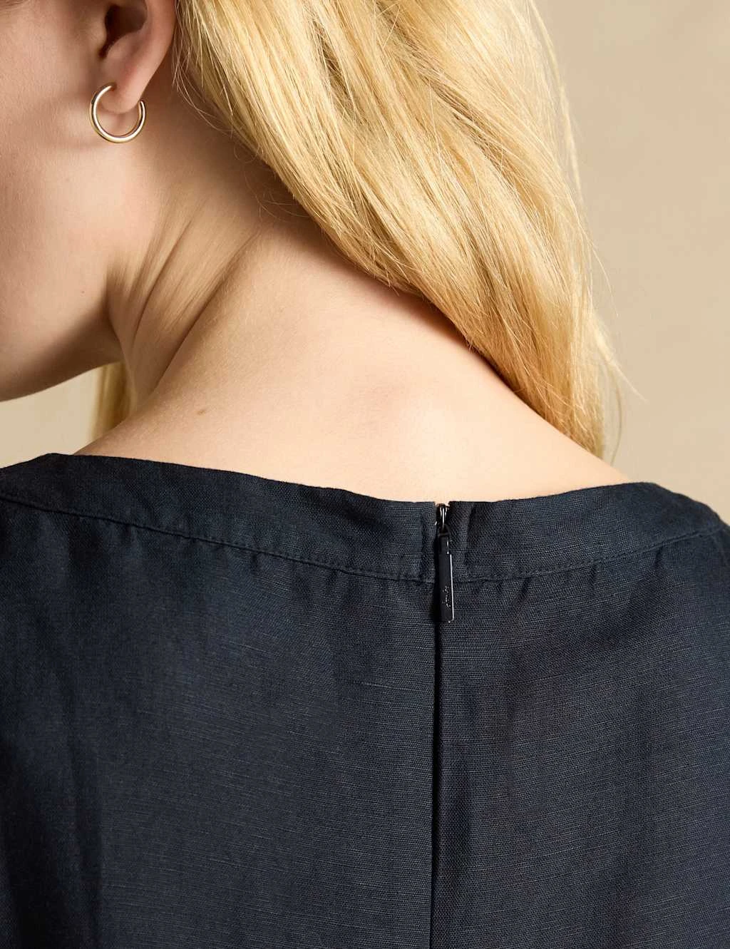 This linen-blend shift dress from Joules is a versatile choice for warm weather. It’s cut in a regular fit, with a round neckline and a sleeveless bodice. A back zip fastening ensures a neat look. This piece falls to the knee for a flattering silhouette.