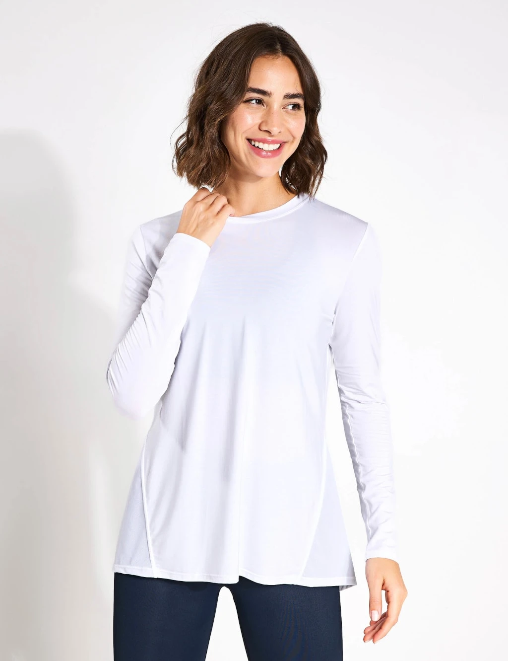 Head to the gym in comfort and style with the Kendall top from Lilybod. It’s made in an easy regular fit with a timeless crew neck. The opaque, breathable power mesh fabric offers ultimate comfort as you work out. This long-sleeved piece features a split back that can be left open or tied for a cropped silhouette.
