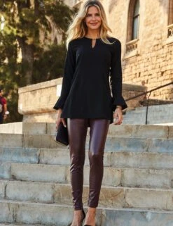 With its striking gold-tone trim at the keyhole neckline, this Sosandar tunic top has an effortlessly sophisticated feel. It’s made in a comfortable regular fit, with a discreet back zip fastening. The long sleeves are embellished with deep fluted cuffs for an extra feminine finish.