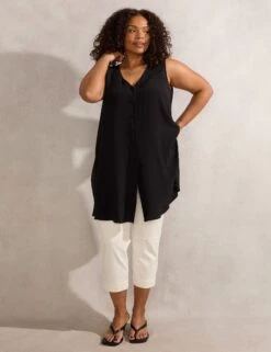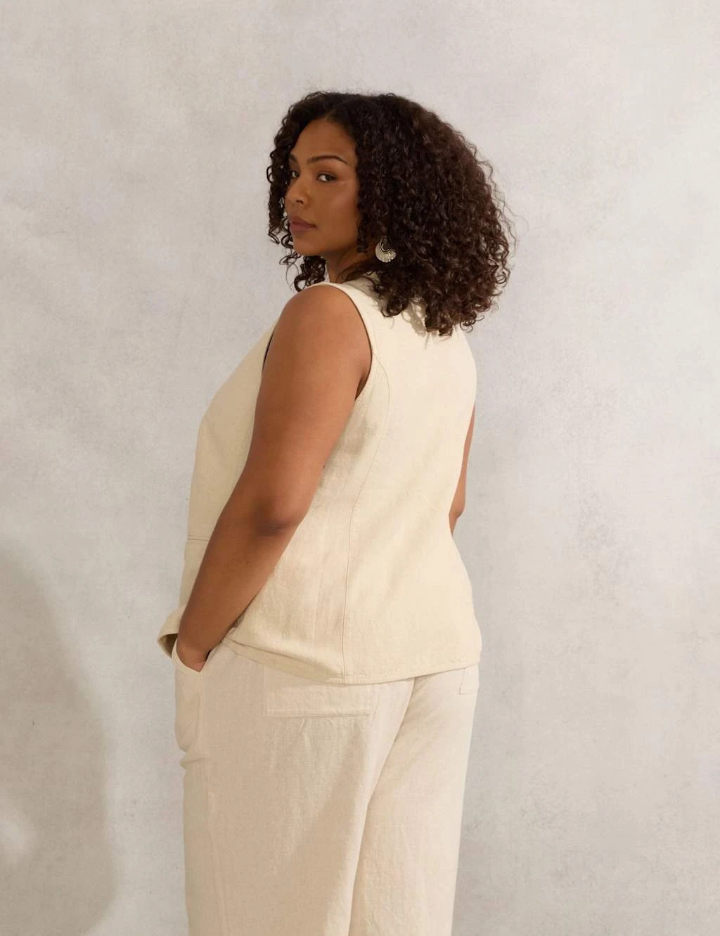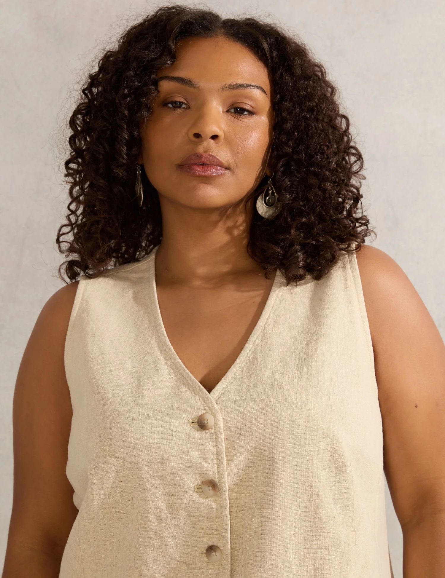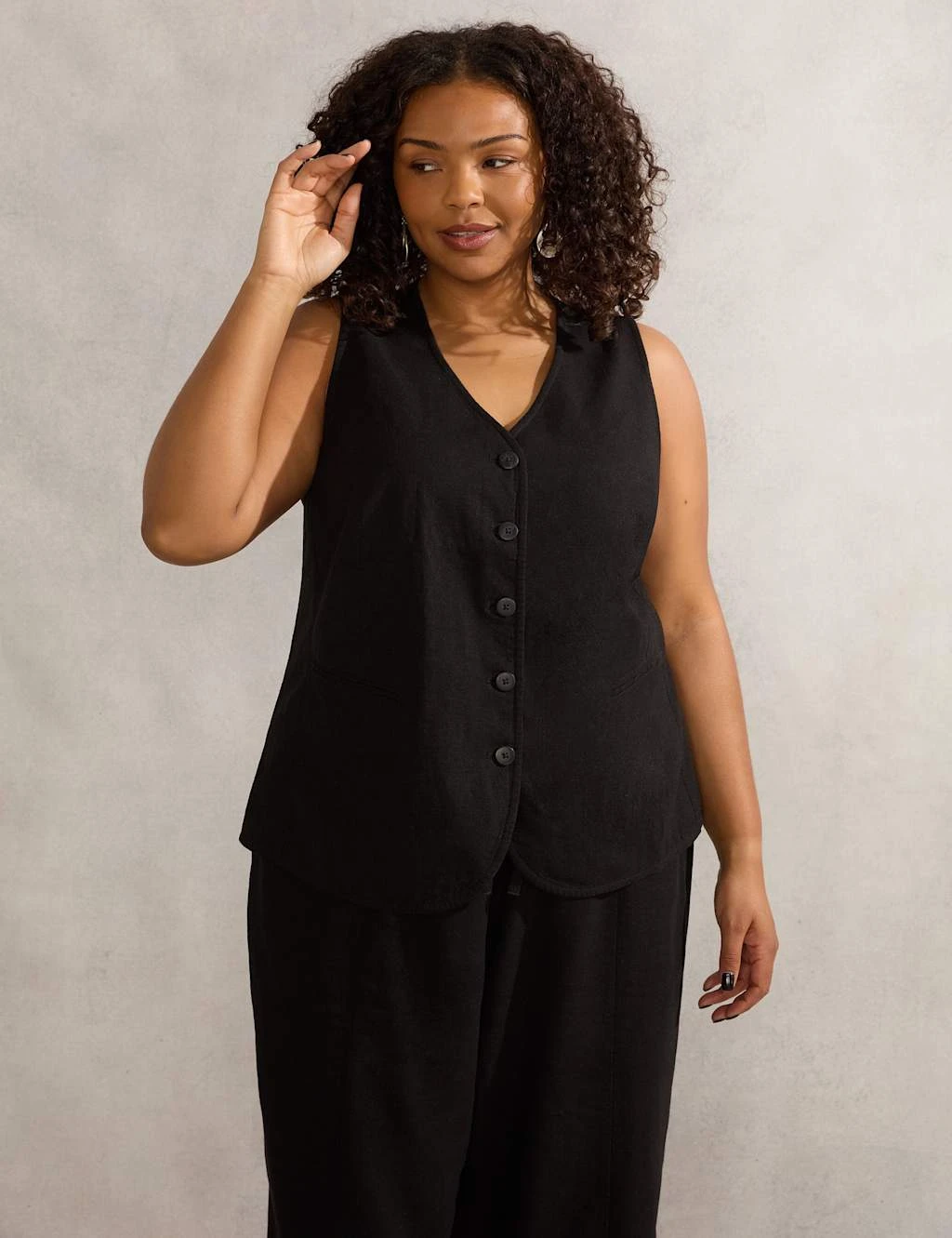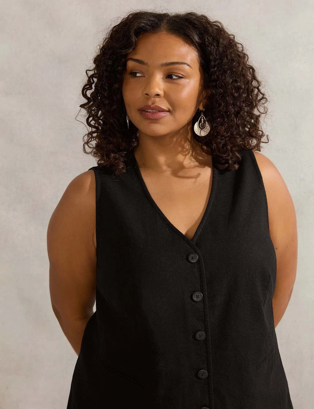 This linen-blend waistcoat by Live Unlimited London will make a versatile addition to your wardrobe. It’s designed in a regular fit, with a smart buttoned front and a feminine v-neckline. The sleeveless piece is complete with two vent pockets.