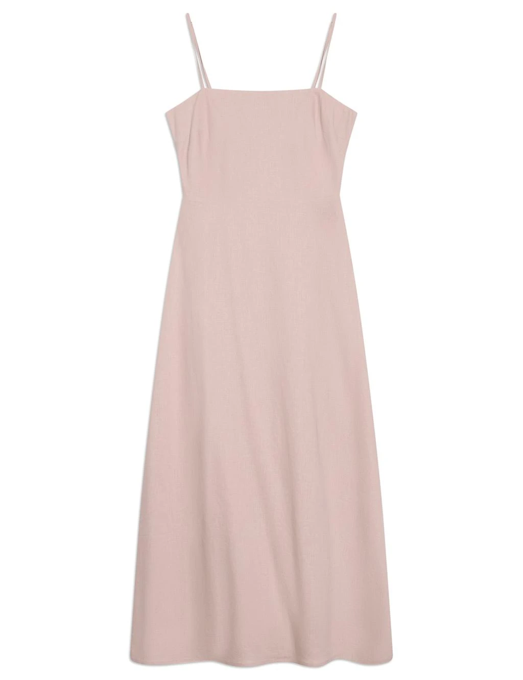 Crafted from a lightweight linen blend, this strappy slip dress by Albaray is a warm-weather staple. It’s designed in an easy regular fit with a square neck for a modern touch. The back features a statement cut-out detail and an elasticated panel for comfort. A midi-length hem creates an elegant silhouette.