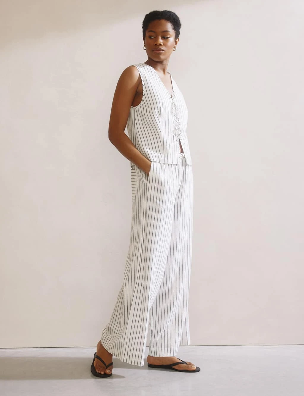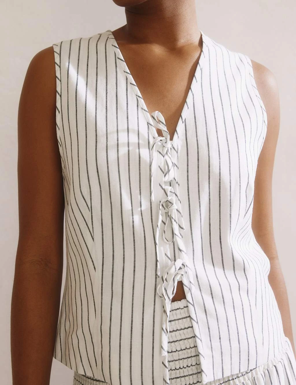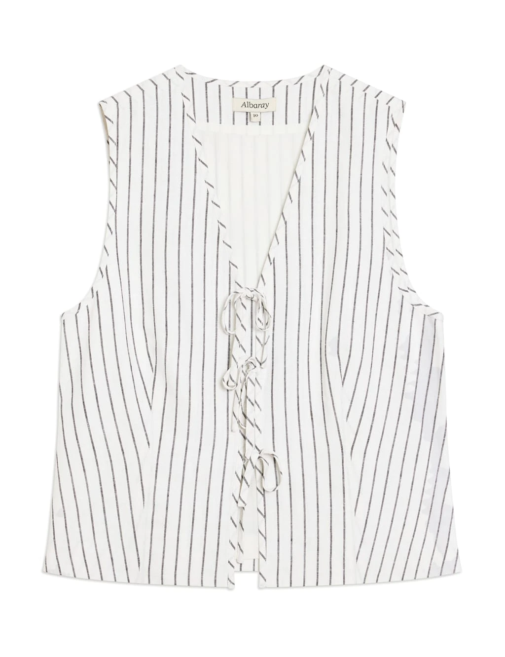 This waistcoat by Albaray is crafted from linen-blend fabric for a fresh feel. Cut in a regular fit, with a contemporary cropped length and a tie front for a playful touch. A striped pattern gives this piece a stylish, nautical-inspired look.